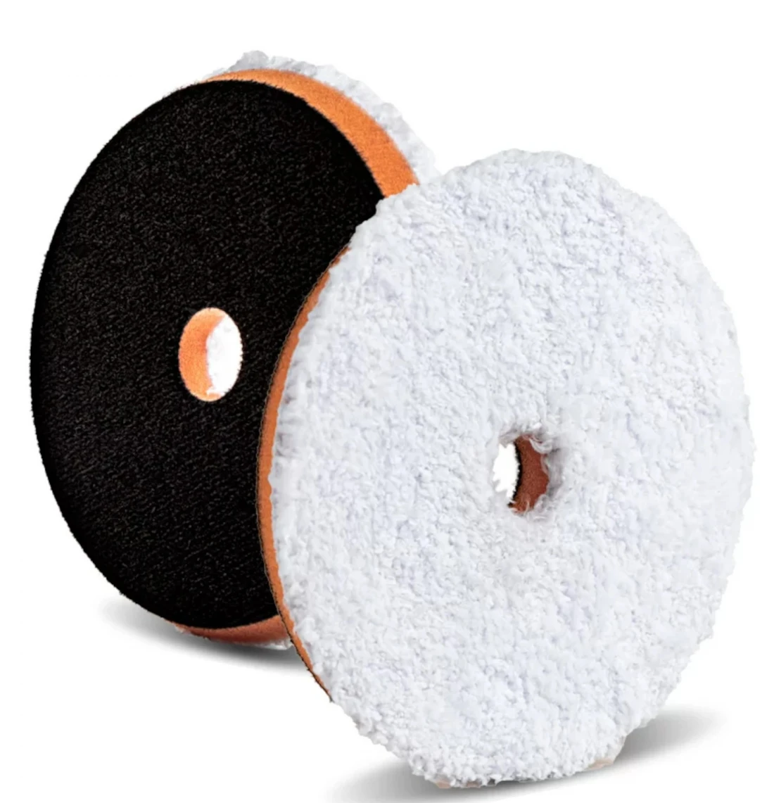 Lake Country HDO Light Cutting Microfiber Pad Pady polerskie z linii HDO zostały zaprojektowane z myślą o pracy na maszynach Dual Action o dużym skoku, aby zapewnić wysoką trwałość i wydajność. Połączenie dobrze znanej mikrofibry i pianki o stożkowym kształcie pozwala na stosowanie dodatkowych technik cięcia i polerowania m.in. lekkie nachylenie, a także poprawia dostęp do trudno dostępnych miejsc, jednocześnie tworząc bezpieczną przestrzeń pomiędzy talerzem maszyny a polerowaną powierzchnią. HDO Light Cutting Microfiber Pad przeznaczony jest do usuwania umiarkowanych zarysowań lakieru, a przy tym pozwala uzyskać bardzo dobre wykończenie. Najlepiej sprawdza się z pastami polerskimi o średnio ściernych właściwościach. Najważniejsze cechy: Otwór centralny – zmniejsza ryzyko przegrzania, a także zwiększa trwałość pada i poprawia bezpieczeństwo pracy. Stożkowy kształt – zapewnia równomierny rozkład nacisku, a także zwiększa precyzję i bezpieczeństwo pracy. Stożkowy kształt zapobiega odkształcaniu się pada i zapewnia jego równomierną rotację. Doskonale sprawdza się na zaokrąglonych i mocno wyprofilowanych panelach. Dane techniczne: Średnica pada: 165 mm Siła polerowania: średnia Zastosowanie: usuwanie średniej głębokości zarysowań Mocowanie: rzep Kolor pianki: pomarańczowy