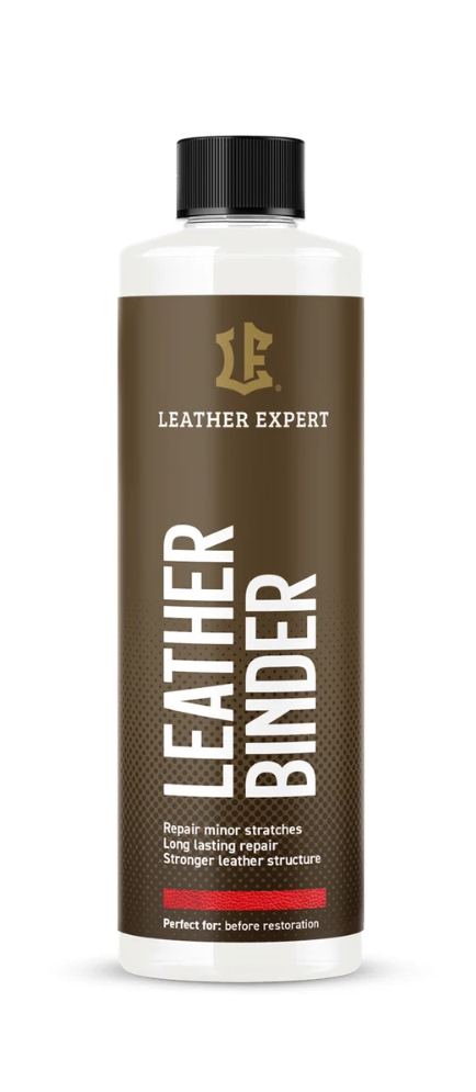 Leather Binder – środek przeznaczony dla osłabionych skór naturalnych. Produkt wnika głęboko w głąb skóry i wiążąc luźne włókna. Spoiwo wchłania się w włókna tworząc silniejszą strukturę co w efekcie znacząco zwiększa wytrzymałość na rozciąganie skóry i sprawia, że skórę łatwiej się naprawia. Może zostać wykorzystany do przeprowadzenia drobnych napraw takich jak np. zarysowania czy zadrapania po kocie. Zalety: wzmacnia włókna skóry przedłuża żywotność skóry ułatwia proces renowacji zastosowanie profesjonalne i konsumenckie Leather Binder znajduje zastosowanie w renowacji różnego rodzaju skór, obuwia, galanterii i torebkach a także w samochodach i meblach skórzanych. Używać do skóry naturalnej. Nie stosować do zamszu i nubuku. Jak używać? Upewnij się, że skóra została dobrze oczyszczona i przygotowana. Do czyszczenia używamy Leather Cleaner albo Leather Mousse. Przed użyciem wymieszać Leather Binder. Nałóż trzy cienkie warstwy na uszkodzone miejsce za pomocą gąbki każdą warstwę podsuszając. Szlifować na gładko papierem ściernym o ziarnistości 1200. Czynność należy powtórzyć, jeśli to konieczne. Farbę Leather Colourant nakładaj za pomocą gąbki lub pistoletu natryskowego do uzyskania zadowalającego efektu. W celu lepszego zabezpieczenia powłoki należy nałożyć Leather Top Coat. Przez 5 dni po naprawie nie czyścić i nie konserwować skóry. Pojemność: 250ml