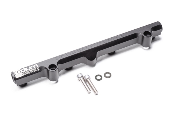 PORTS AND FITTINGS The fuel rail ports are tapped for 8AN ORB. Fittings ARE NOT included with the fuel rail and must be purchased separately. 8AN ORB Adapter Fittings can be found HERE.8AN ORB Direct Mount Regulators can be found HERE.8AN ORB Fuel Pulse Dampers can be found HERE.Fuel Pressure Gauge Adapters can be found HERE. Appropriate fittings must be selected based on the specific application. Ample space around the fuel rail port(s) is necessary for larger accessories such as fuel pressure regulators, fuel pressure gauges, and fuel pulse dampers. To verify clearance, the dimensional drawings on the product pages can be used as a reference guide. COMPATIBILITYThis fuel rail is compatible with all OEM Honda K-series intake manifolds (RBC, RBB, RRC, PRB, etc). If using an aftermarket manifold (Skunk2, etc) check with the manufacturer about fuel rail compatibility. If the manifold fits the OEM fuel rail, then the Radium fuel rail will also fit.OVERVIEW Manufactured with a large 0.69" internal bore, the fuel rail can support all necessary engine power requirements. They are CNC machined from extruded 6063 aluminum, media blasted, black anodized, and laser etched for a high quality surface finish. Like the OEM fuel rails, the injector bores are 14mm ID so factory injectors are permitted. The fuel rail is equipped with features to accept the OEM fuel injector clips (shown below). This kit is compatible with all fuel types including popular alcohol mixtures such as E85. The OEM insulating spacers (Honda P/N: 16638-PNA-000) are reused and phenolic washers are included to thermally insulate the fuel rail from the aluminum intake manifold. FUEL INJECTOR COMPATIBILITYThis fuel rail is compatible with factory or OEM equivalent fuel injectors. If upgrading fuel injectors, consult your aftermarket injector supplier for details. Radium Engineering cannot specify any further injector dimensions other than stating ‘OEM equivalent’. CONFIGURATION20-0230-02 Fuel Rail, Honda K-SeriesThis part only includes the fuel rail and the mounting hardware making it ideal for custom fuel plumbing applications. If using the stock fuel feed line, select the plumbing kit shown below. Included:-Black Anodized Laser Etched Aluminum Fuel Rail-Stainless Steel Mounting Hardware-Phenolic Thermal Insulating Washers Instruction PDF