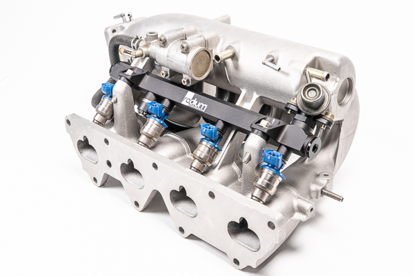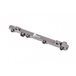 This 0.69" big bore fuel rail is CNC machined from billet 6061 aluminum, black anodized, and laser etched for a high quality surface finish. It is a direct replacement for the OEM fuel rail. A plumbing kit is available that provides all the necessary parts to install and plumb the fuel rail with OEM components. This kit is compatible with all fuel types including popular alcohol mixtures such as E85. The OEM plastic spacers are reused to thermally insulate the fuel rail from the aluminum intake manifold. PORTS AND FITTINGS The fuel rail features four threaded ports that are all tapped for 8AN ORB. What is ORB? 8AN ORB Adapter Fittings can be found 8AN ORB Direct Mount Regulators can be found8AN ORB Fuel Pulse Dampers can be found Fuel Pressure Gauge Adapters can be found If building a custom fuel setup, appropriate fittings must be selected based on the specific application. Ample space around the fuel rail port(s) is necessary for larger accessories such as fuel pressure regulators, fuel pressure gauges, and fuel pulse dampers. To verify clearance, the dimensional drawings on the product pages can be used as a reference guide. COMPATIBILITYThis fuel rail is compatible with the following vehicles. 1989-1993 Mazda MX-5 Miata1993-1999 Mazda Xedos 6 1997-2003 Mazda Familia1997-2003 Mazda Etude1997-2004 Kia Sephia1997-2004 Kia Shuma1997-2004 Kia Spectra1989-1993 Eunos Roadster FUEL INJECTOR COMPATIBILITY This fuel rail is compatible with factory or OEM equivalent fuel injectors. If upgrading fuel injectors, consult your aftermarket injector supplier for details. Radium Engineering cannot specify any further injector dimensions other than stating ‘OEM equivalent’. 20-0769-02 Fuel Rail, Mazda 1.6L B6This is the basic fuel rail, and only includes the fuel rail as shown in the picture below. Factory mounting hardware is re-used (consult install instructions for more info). This is ideal for high performance applications where the installer is going to build a custom fuel system. If using the factory regulator and fuel lines, consider purchasing the plumbing kit (below).
