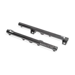 PORTS AND FITTINGS The fuel rail ports are tapped for 8AN ORB. 8AN ORB Adapter Fittings. 8AN ORB Direct Mount Regulators. 8AN ORB Fuel Pulse Dampers. Fuel Pressure Gauge Adapters. Appropriate fittings must be selected based on the specific application. Ample space around the fuel rail port(s) is necessary for larger accessories such as fuel pressure regulators, fuel pressure gauges, and fuel pulse dampers. To verify clearance, the dimensional drawings on the product pages can be used as a reference guide. COMPATIBILITY 89-96 Lexus LS400 89-96 Toyota Celsior 89-96 Toyota Crown 89-97 Toyota Crown Majesta 89-97 Toyota HiAce HiMedic Ambulance 91-97 Lexus SC400 91-97 Toyota Soarer 92-97 Toyota Aristo 95-97 SARD MC8 95-97 SARD MC8-R OVERVIEW Manufactured with 0.7" large internal bores, the Radium Engineering fuel rails can support all necessary engine power requirements. INJECTORS The machined injector ports are compatible with 11mm upper injector O-rings. The fuel rails are compatible with OEM fuel injectors (or equivalent). PORTS Each fuel rail has three 8AN ORB (3/4"-16) ports. Adapter fittings and fuel hose will need to be purchased separately. FEATURES Anodized surface finish for wear and corrosion resistance Lighweight aluminum construction Inner bore diameter: 0.7 inch Reuses thermal insulating spacers No special tools required for installation Instruction PDF