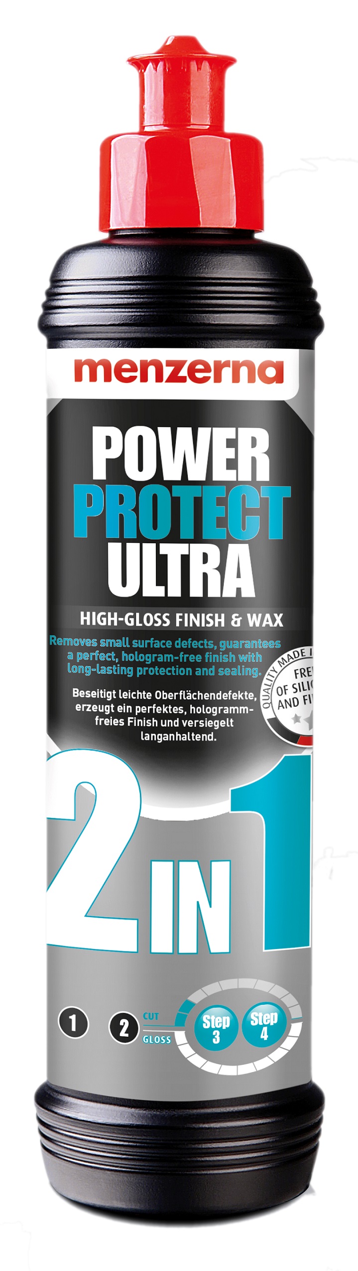 Power Protect ULTRA Produkt typu All in One - czyli mleczko oczyszczające i zabezpieczające lakier w jednym prostym kroku! Wosk z zawartością drobnych niezwykle równo zmielonych drobinek ściernych pozwala na korekcję niewielkich niedoskonałości lakieru takich jak mikrozarysowania, zmatowienia itp. Zapewnia bezhologramowe wykończenie oraz wysoki stopień połysku. Nie zawiera silikonu. Trwale zabezpiecza powierzchnię lakieru. Mocne strony: koryguje mikro-zarysowania i zabezpiecza lakier łatwość użycia nie zawiera silikonu (bezpieczna do użycia w zakładach lakierniczych) może być używana ręcznie lub maszynowo zabezpiecza lakier nadając efekt hydrofobowy (odrzuca wodę) Sposób użycia: Przed polerowaniem dokładnie oczyścić powierzchnię. Przed użyciem wstrząsnąć butelką i nanieść niewielką ilość produktu na pad polerski (kropla wielkości ziarnka grochu wystarcza na powierzchnię o wymiarach ok. 80 x 80 cm). Stosować polerkę rotacyjną lub orbitalną metodą krzyżową. Zalecamy użycie polerki orbitalnej, aby uzyskać perfekcyjne wykończenie. Na początku procesu polerowania należy zastosować lekki nacisk. W końcowych cyklach należy zmniejszyć nacisk i zwiększyć prędkość maszyny polerskiej o 10%. Po nałożeniu: pozostawić do wyschnięcia na 5 do 10 minut i usunąć resztki pasty polerskiej ściereczką z mikrofibry bez wywierania nacisku. Pojemność: 250ml