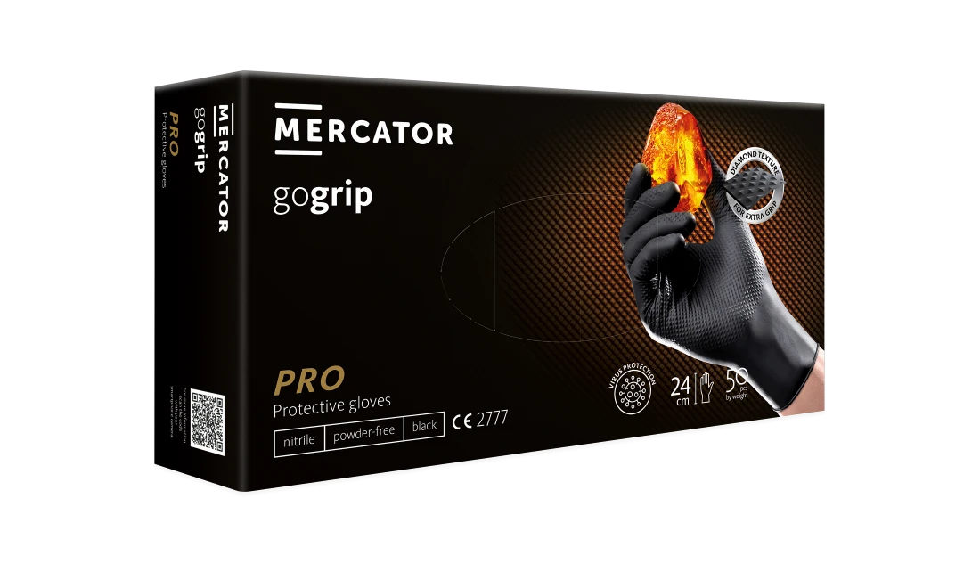 Gogrip Black Wyjątkowo elastyczne MERCATOR Gogrip są 2 razy grubsze od standardowych rękawiczek dostępnych na rynku. Te wykonane z trwałego nitrylu rękawice, cechują się unikalną diamentową teksturą 3D, która sprawia, że Twój chwyt jest mocny i stabilny a równocześnie nie ogranicza Twojej precyzji. Oryginalna struktura MERCATOR Gogrip sprawi, że możesz obsługiwać urządzenia mobilne bez zdejmowania rękawiczek. Dodatkowo zrewolucjonizowana diamentowa tekstura 3D zapobiega potliwości dłoni w trakcie użytkowania, co podwyższa komfort pracy, minimalizując ryzyko uszkodzeń skóry dłoni. Polecane przede wszystkim w branżach motoryzacyjnej, konstrukcyjnej, montażowej, przemysłowej – wszędzie tam, gdzie Twoja dłoń potrzebuje ochrony przed zabrudzeniem i narażona jest na kontakt z substancjami chemicznymi takimi jak oleje lub smary. Wysoka jakość środków ochrony indywidualnej potwierdzona jest klasyfikacją rękawic jako kategoria III, typ B. Poddajemy nasze rękawice szczegółowym testom, by zapewnić Ci bezpieczeństwo i zabezpieczenie przeciw grzybom, bakteriom i wirusom. Elastyczność i wysoka odporność na rozciąganie pozwalają zmniejszyć ilość zużytych rękawic – dzięki temu Ty dbasz o środowisko. Łatwe zakładanie rękawic i pewny chwyt dzięki specjalnej diamentowej teksturze – także w środowisku tłustym i mokrym Ochrona przed substancjami chemicznymi Barierowa dla bakterii, wirusów i grzybów Pozwalają na obsługę urządzeń dotykowych Elastyczne i wysoce odporne na rozciąganie Wysoka wytrzymałość oraz jakość rękawic Zapewnij swoim dłoniom ochronę w klasie premium – wybierz MERCATOR gogrip! Model rękawic MERCATOR Gogrip ma dopuszczenie do kontaktu z żywnością zgodnie z dyrektywą Komisji Europejskiej nr 1935/2004. Rozmiar: L Opakowanie zawiera 50 sztuk rękawiczek.