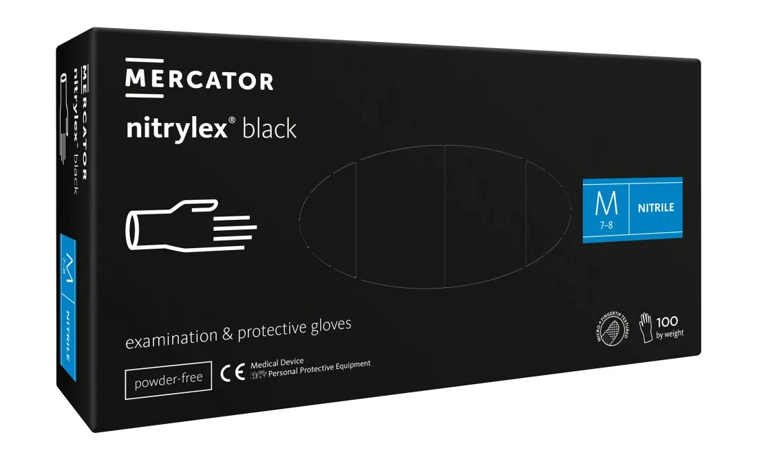 nitrylex black 100 szt. rękawice diagnostyczne i ochronne, nitrylowe, bezpudrowe, czarne nitrylex black to nitrylowe rękawice diagnostyczne, ochronne, niejałowe. Teksturowane na końcach palców, bezpudrowe. Powierzchnia wewnętrzna chlorowana. Mankiet rolowany. RYZYKO: Komponenty użyte w produkcji rękawic mogą powodować reakcje alergiczne. Niektóre rękawice mogą zawierać składniki będące przyczyną wystąpienia alergii u osób na nie uczulonych, u których mogą powstawać kontaktowe podrażnienia i/lub reakcje alergiczne. W przypadku wystąpienia reakcji alergicznej skonsultuj się z lekarzem. NORMY I CERTYFIKATY Wyrób ten jest produktem posiadającym wszelkie certyfikaty, zgodnie z najnowszymi wymaganiami regulacyjnymi w zakresie wyrobów medycznych, środków ochrony indywidualnej, wyrobów przeznaczonych do kontaktu z żywnością. Tym samym wyrób spełnia również najwyższe standardy jakościowo-produktowe, przewidziane dla wyrobów medycznych, środków ochrony indywidualnej, wyrobów przeznaczonych do kontaktu z żywnością. Potwierdzenie powyższych zapisów oraz wykaz certyfikatów, norm i przepisów prawno-regulacyjnych, dotyczących wyrobu znajduje się w Deklaracji Zgodności. Rozmiar: M Opakowanie zawiera 100 sztuk rękawiczek