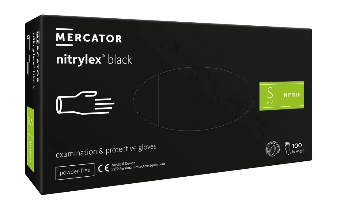 nitrylex black 100 szt. rękawice diagnostyczne i ochronne, nitrylowe, bezpudrowe, czarne nitrylex black to nitrylowe rękawice diagnostyczne, ochronne, niejałowe. Teksturowane na końcach palców, bezpudrowe. Powierzchnia wewnętrzna chlorowana. Mankiet rolowany. RYZYKO: Komponenty użyte w produkcji rękawic mogą powodować reakcje alergiczne. Niektóre rękawice mogą zawierać składniki będące przyczyną wystąpienia alergii u osób na nie uczulonych, u których mogą powstawać kontaktowe podrażnienia i/lub reakcje alergiczne. W przypadku wystąpienia reakcji alergicznej skonsultuj się z lekarzem. NORMY I CERTYFIKATY Wyrób ten jest produktem posiadającym wszelkie certyfikaty, zgodnie z najnowszymi wymaganiami regulacyjnymi w zakresie wyrobów medycznych, środków ochrony indywidualnej, wyrobów przeznaczonych do kontaktu z żywnością. Tym samym wyrób spełnia również najwyższe standardy jakościowo-produktowe, przewidziane dla wyrobów medycznych, środków ochrony indywidualnej, wyrobów przeznaczonych do kontaktu z żywnością. Potwierdzenie powyższych zapisów oraz wykaz certyfikatów, norm i przepisów prawno-regulacyjnych, dotyczących wyrobu znajduje się w Deklaracji Zgodności. Rozmiar: S Opakowanie zawiera 100 sztuk rękawiczek