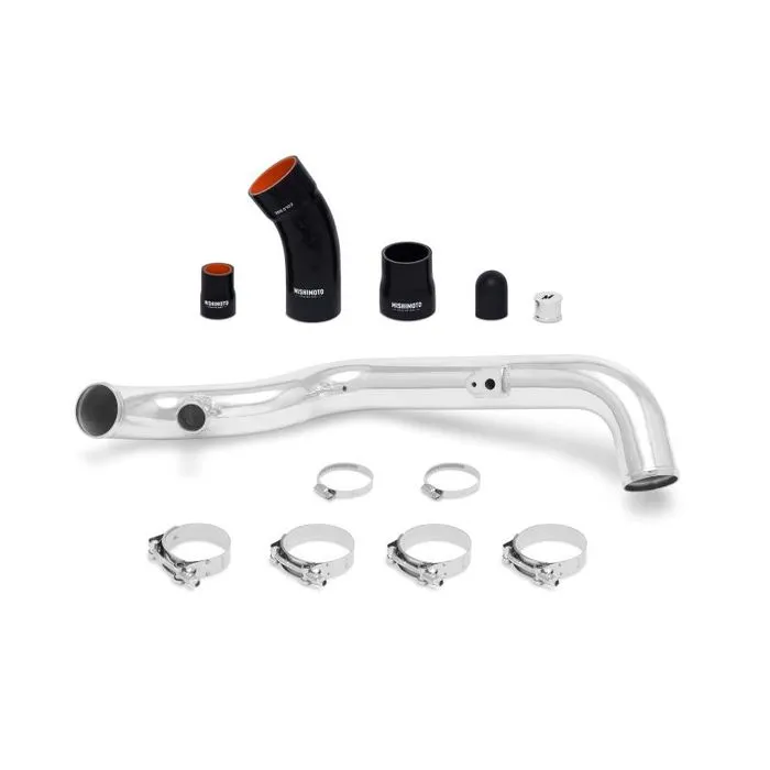 Increase the airflow to your 1.6L EcoBoost with the Mishimoto Fiesta ST cold-side intercooler pipe kit for the 2014+ Ford Fiesta ST. The stock cold-side Fiesta ST intercooler pipe is riddled with restrictive bends and small diameter sections that impede airflow. These Mishimoto intercooler pipes have a 2.5" diameter and are mandrel-bent to eliminate any restrictions. When you're turning up the boost on your Fiesta, these pipes will have no problem supporting the power you throw at them. Plastic is always a material Mishimoto strives to eliminate, and the stock cold-side Fiesta ST intercooler pipe is unacceptable. The stock pipe is constructed completely of weak plastic that is bound to leak over time. The Mishimoto cold-side intercooler pipe is comprised entirely of lightweight aluminum and features a CNC-machined sensor flange for the stock pressure sensor, and a silicone hose and CNC plug to allow deletion of the stock sound symposer system. Mishimoto's cold-side Fiesta ST intercooler piping features durable silicone couplers and stainless steel T-bolt clamps to ensure leak free connections. Installation can completed in under 30 minutes with no modifications to the engine bay, as these cold-side Fiesta ST intercooler pipes are a direct fit and work with both the stock and Mishimoto performance Fiesta ST intercoolers. Mishimoto's Fiesta ST cold-side intercooler piping is available in either a polished or wrinkle black finish, and, like all of our Fiesta ST performance parts, includes the Mishimoto Lifetime Warranty.Direct fit for the 2014+ Ford Fiesta STDyno-proven gains of up to +7 whp and +8 wtqPipe Construction: Polished Aluminum Pipe Diameter: 2.5"Installs in under 30 minutesMishimoto Lifetime Warranty