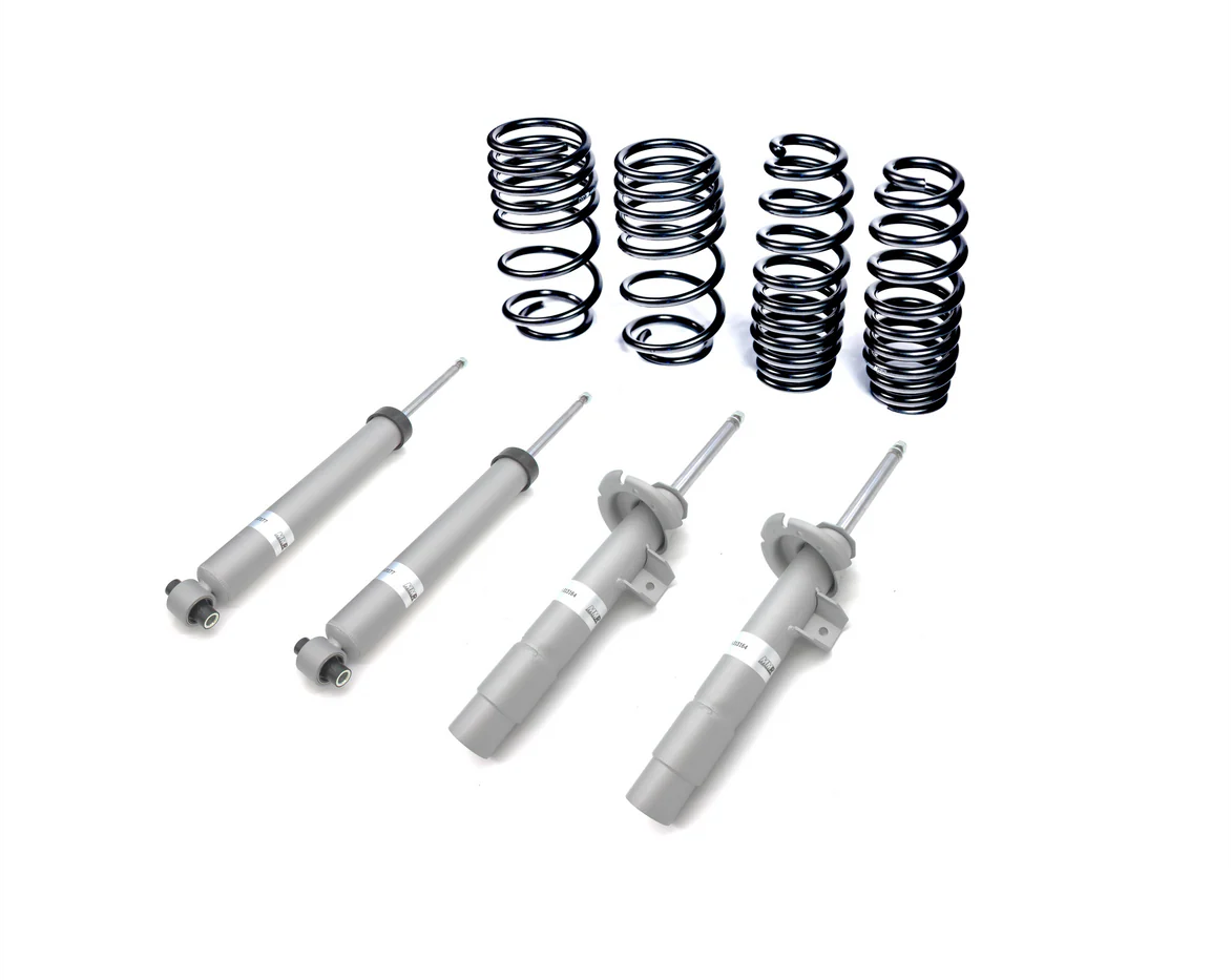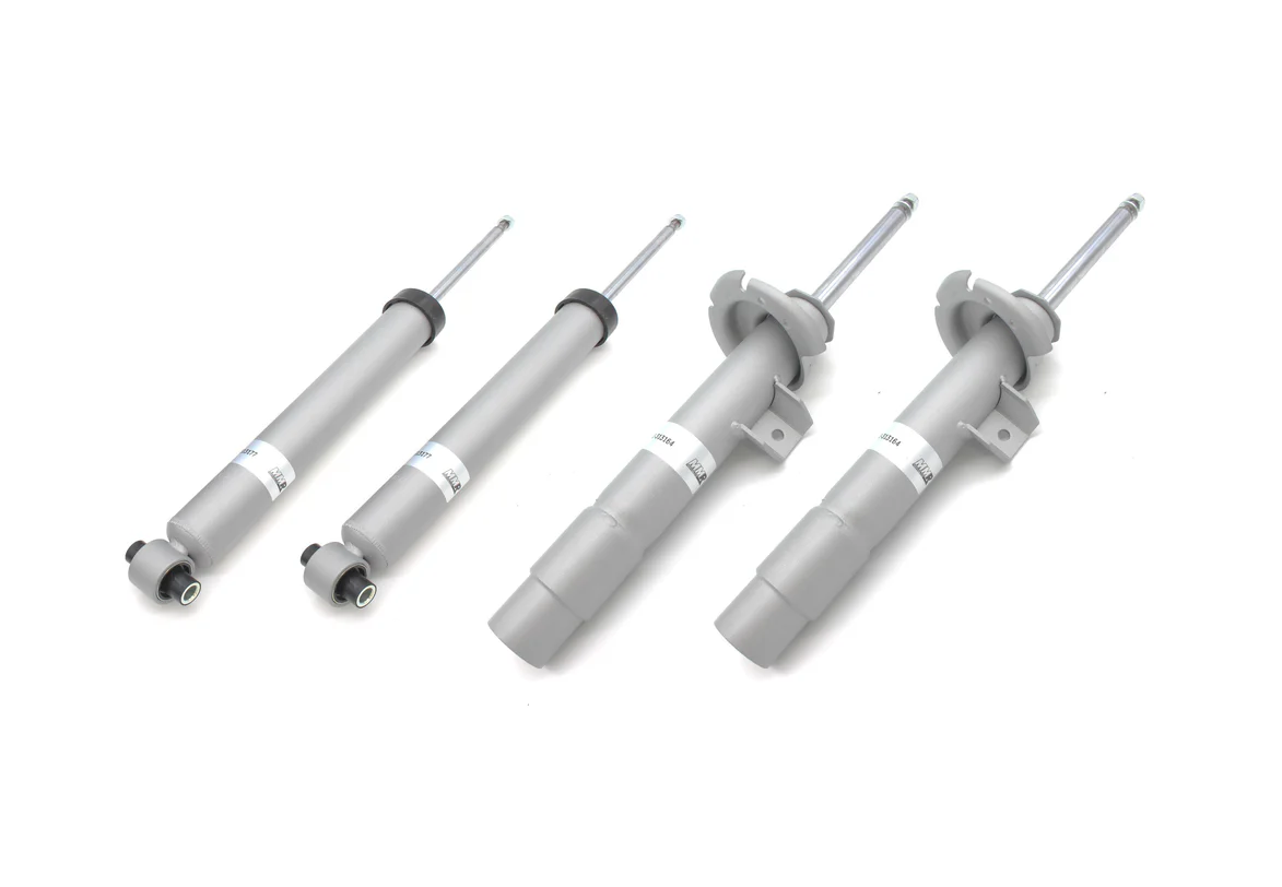 Our MMR Sport Suspension fast-road upgrade for BMW 1 & 2-Series F2x combines our MMR x Bilstein Sport Dampers with perfectly matched MMR Lowering Springs to transform both the appearance and handling dynamics of your car, whilst still retaining a beautifully ride quality. Give your car a whole new lease of life with the MMR Sport Suspension upgrade. We've meticulously struck a ride & handling balance that matches the very best thoroughbred German performance cars - tight, perfectly controlled yet unmistakably sporty. Many experts consider suspension development to be as much an art as a science. In truth, it's a bit of both. When it comes to a matched set of Sport Dampers and Lowering Springs at an affordable price, this non-adjustable fast-road kit solves the compromise between performance and comfort for keen BMW 1 & 2-Series F2x drivers. The kit combines the MMR Sport Damper kit - comprising two front and two rear Tri-Valve dampers - with a set of 4 perfectly-matched MMR Lowering Springs specific to the BMW 1 & 2-Series. These springs provide a drop at the front of 20mm whilst the rear sits lower by 30mm. Our track & race set-up experience on the F2x-platform has allowed us to develop this fast-road orientated damper exclusively in conjunction with industry-leaders Bilstein. The secret to our development with Bilstein has been to produce a set of shock absorbers with a damping curve that precisely matches the MMR Spring rate. The Sport Dampers feature a sophisticated dual tube design and low-pressure Nitrogen gas system that ensures the sophisticated ride and handling dynamics and sets them apart from standard OEM dampers. Each damper features three hydraulic valves inside: bump, rebound and a main valve, controlled by low and high-speed shaft frequencies (smooth and rough road conditions). The result? Together, the spring and damper setup we have reached gives a taught, sporty feel during high speed cornering on smooth surfaces yet always retains comfort on uneven surfaces. A little tighter than factory, sure, but never crashy or uncomfortable. In other words, appearance, handling and ride quality that's exactly how a good hot-hatch should be. Features The MMR Sport Suspension upgrade consists of: Two front and two rear MMR Sport dampers. Four MMR Lowering Springs, specific to BMW 1 & 2-Series F2x We strongly recommend a full 4-wheel alignment after fitment. The Sport Suspension kit is easily fitted by any experienced technician, and fitment is fully reversible should you ever wish to remove them. Applications Series Model Code Year Variant Engine 1 Series F20/F21 * 2011 - 2019 1-Series F20 / F21 All * 2 Series F22/F23 * 2013 - 2020 2-Series F22 / F23 All * * Not applicable for any X-Drive models