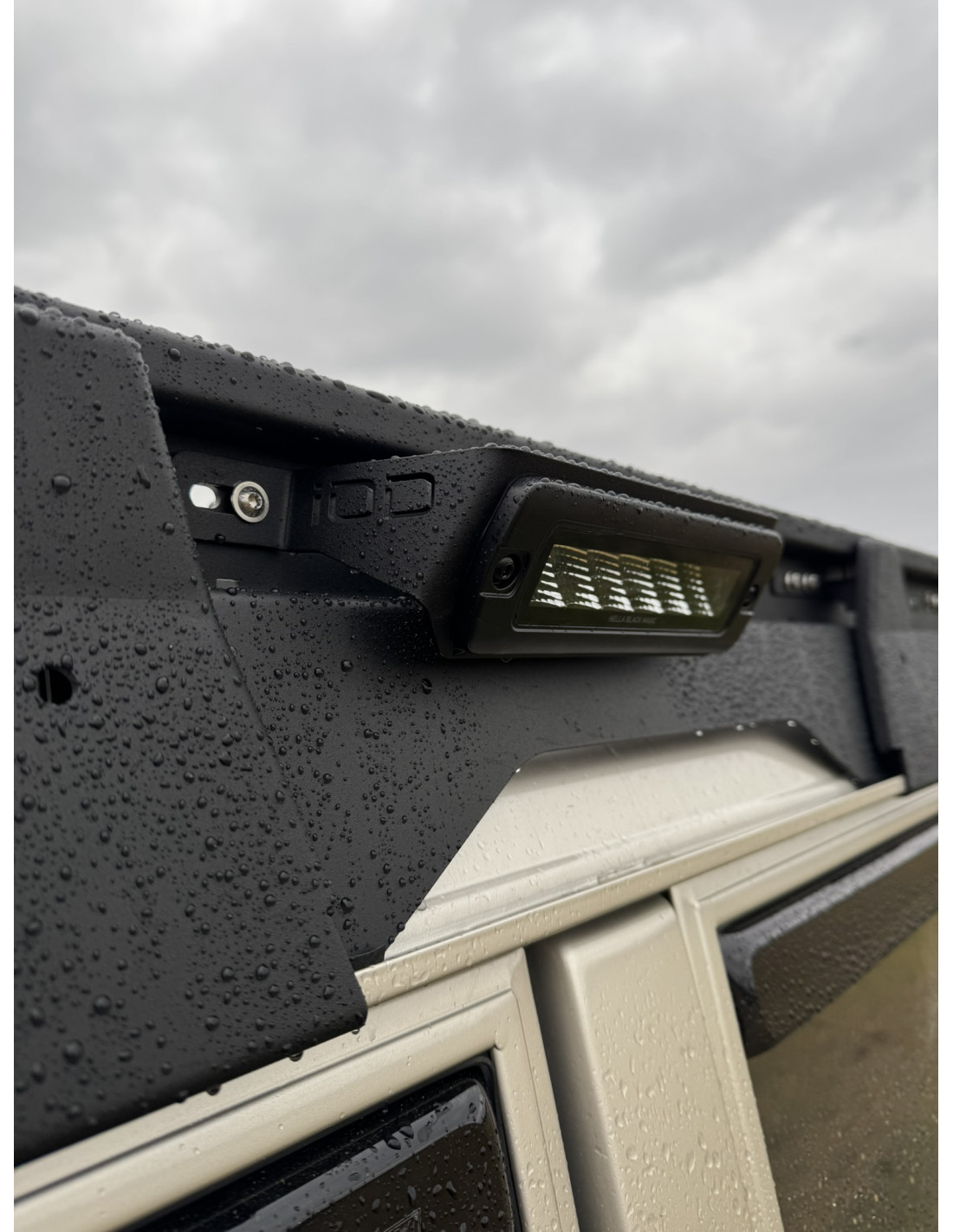 Mocowanie umożliwia montaż lampy bocznej marki Hella na bokach bagażnika IOD.