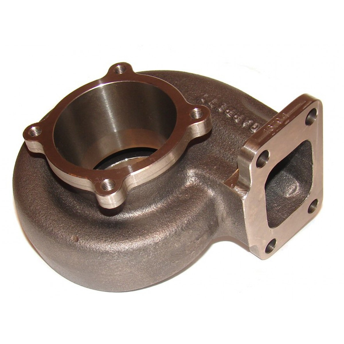 Korpus żeliwny Garrett GT35  740902-0004740902-0005740902-0006 Obudowa żeliwna do turbosprężarki Garrett GT35 Cechy Techniczne: •       Odlew z „Ni-Resist” dla ekstremalnych warunków•       TRIM 84 A/R •       Wlot T3•       Wylot 4 śruby•       Swobodny przepływWaga: 5.6 kg Flansza kolektora i AR - T3 .82