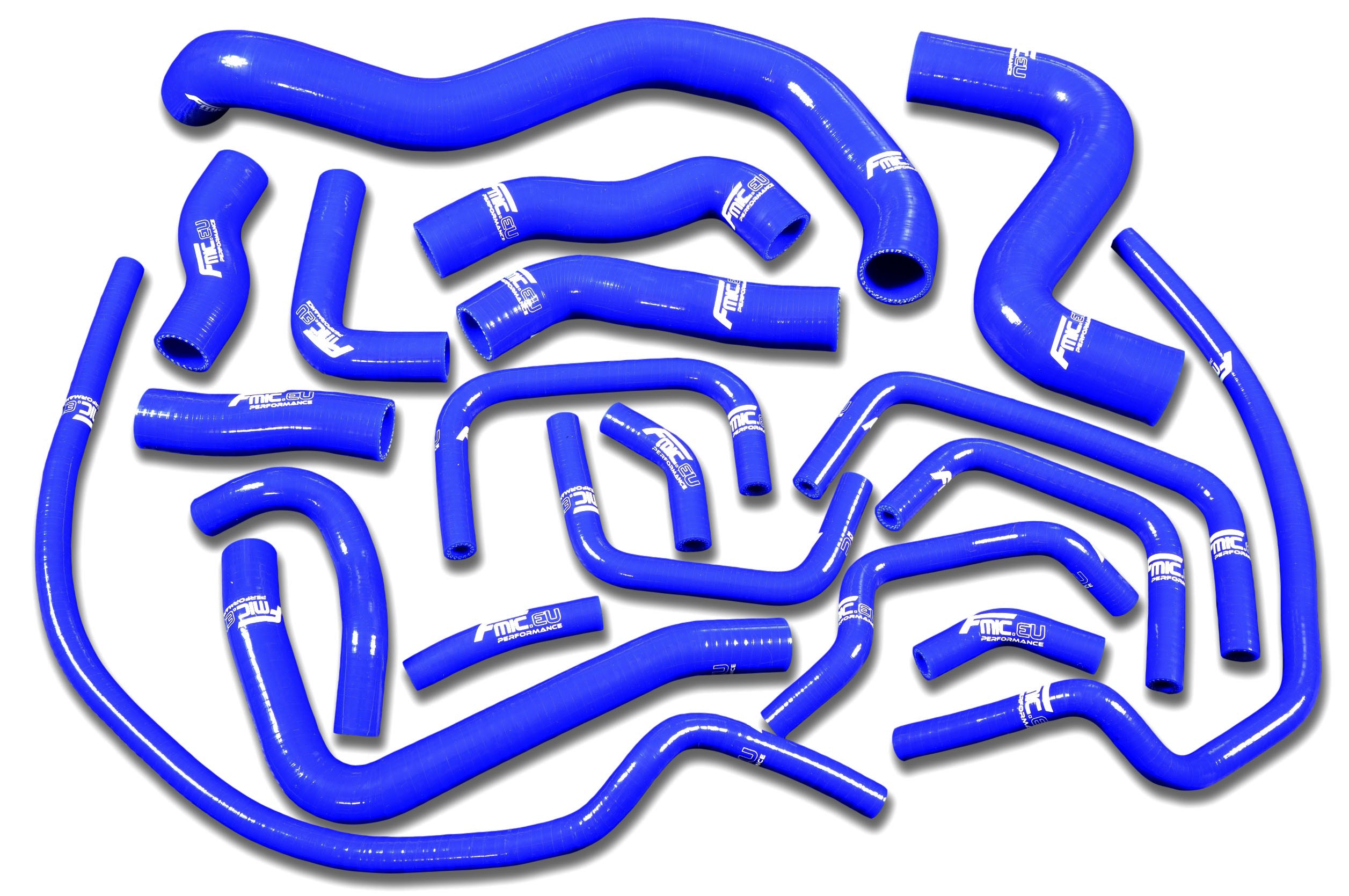 Łączniki silikonowe FMIC to profesjonalny produkt wykonany z najwyższej klasy silikonu odpornego na każdy rodzaj płynu chłodniczego. Kilkuwarstwowe zbrojenie zapewnia ogromną odporność na wysokie ciśnienia panujące wewnątrz układu chłodzenia. Mimo mocnego i trwałego oplotu łączniki cechują się dużą elastycznością oraz znacznie dłuższą żywotnością, niż seryjne, często parciejące i pękające przewody.