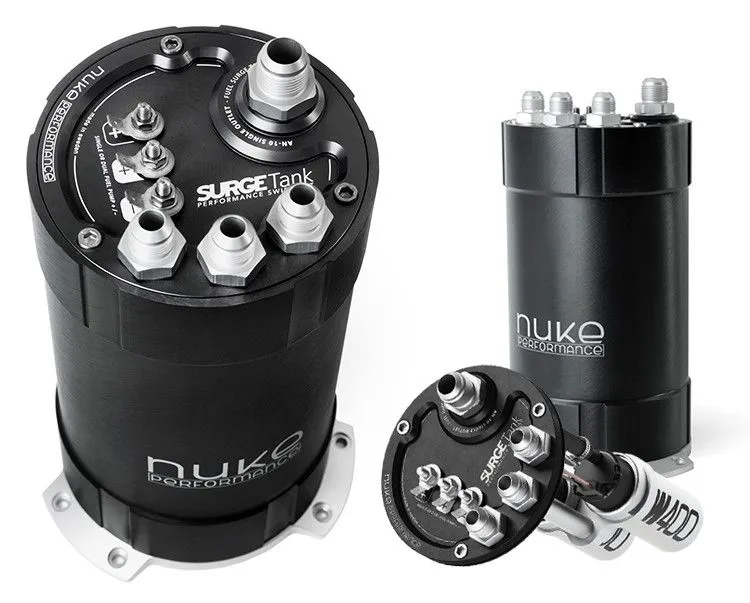 Nuke Performance 3-litrowy zbiornik surge tank drugiej generacji do pomp paliwowych Deatschwerks DW400. Pierwsza w swoim rodzaju specjalnie opracowana i zaprojektowana konstrukcja do montażu pojedynczej lub podwójnej konfiguracji przełomowej pompy paliwowej Deatschwerks DW400. Rozwiązanie opracowane w ścisłej współpracy z inżynierami z Deatschwerks. 100% bezpieczny dla wszystkich rodzajów paliw Dostarczany z łącznikami AN-10 i AN-8 Umożliwia połączenie dwóch wewnętrznych pomp paliwowych w jeden wylot AN-10 (7/8 UNF). Ten surge tank jest w stanie zapewnić stały przepływ paliwa dla silnika o mocy nawet powyżej 2000 KM. Wszystko czego potrzebujesz do zamontowania pojedynczej lub podwójnej pompy paliwowej DW400 jest w zestawie. Możliwe jest również zamontowanie innej 39-milimeteowej pompy paliwowej o zbliżonych gabarytach w tym samym zbiorniku bez modyfikacji. Pasuje również do nowego Bosch BR540, który ma takie same wymiary zewnętrzne jak DW400. Wszystkie niezbędne akcesoria są dołączone zarówno do konfiguracji pojedynczej, jak i podwójnej. Surge tank jest dostarczany z wewnętrznym uchwytem dedykowanym do pomp paliwowych DW400, ale także z adapterami, które sprawiają, że wszystkie popularne pompy paliwowe 39 mm są możliwe do montażu, takie jak: DW200, DW300, AEM 340L, Aeromotive 340, Walbro (Ti Automotive) GSS 340/341/342, GST 450/520 itd. To, co początkowo miało być naturalnym wyborem dla pompy paliwowej DW400, przekształciło się w doskonałe rozwiązanie i konstrukcję dla większości dostępnych obecnie na rynku pomp paliwowych stosowanych w tuningu i sportach motorowych. Opcjonalne akcesoria : Nyple wylotowe: AN-10 (7/8 UNF) do AN-8 męski: 700-01-116 AN-10 (7/8 UNF) do AN-10 męski: 700-01-112 AN-10 (7/8 UNF) do AN-12 męski: 700-01-113 Powrót: AN-8 (3/4 UNF) do AN-6 męski: 700-01-101 AN-8 (3/4 UNF) do AN-8 męski: 700-01-102 AN-8 (3/4 UNF) do AN-10 męski: 700-01-103 Zestaw surge tank DW400 zawiera: 1 x 3.0 litrowy zbiornik paliwa Aluminiowy wspornik montażowy 1x6 śrub; 1 x AN-10 (7/8 UNF) na męski łącznik AN-10 3 x AN-8 (3/4 UNF) do AN-8 męskie złączki 1 x podwójny wspornik montażowy do pomp paliwowych DW400 2 x 39mm dystanse mocujące pompę paliwa Łącznik 2 x 1/4 BSPP do 8mm Barb (wąż paliwowy) 1 x 1/4 BSPP Wtyczka (do użytku z pojedynczą pompą paliwową) Specyfikacja: Średnica wspornika Ø 178mm (7,00”) Punkty mocowania 6 x M6 (Ø 6,5 mm / 0,25") Waga 2780g (6,12 funta) Gwint wylotowy AN-10 (7/8 UNF) Gwint wlotowy AN-8 (3/4 UNF) Gwint powrotny AN-8 (3/4 UNF) Złącze elektryczne M6, maks. ≈125 A / każdy Wymiary: Wysokość : 255mm * Średnica: 148mm Waga: 2780g * Wszystkie wymiary z wyłączeniem nypli Pasuje do pomp paliwowych: 1 - 2 x Deatschwerks DW200 1 - 2 x Deatschwerks DW300 1 - 2 x Deatschwerks DW400 1 - 2 x AEM 320L 1 - 2 x Aeromotoryczna Stealth 325 1 - 2 x Aeromotoryczna Stealth 340 1 - 2 x Aeromotoryczna Stealth 450 1 - 2 x Bosch BR540 1 - 2 x Ti Automotive Walbro GST450 1 - 2 x Ti samochodowe Walbro GST520