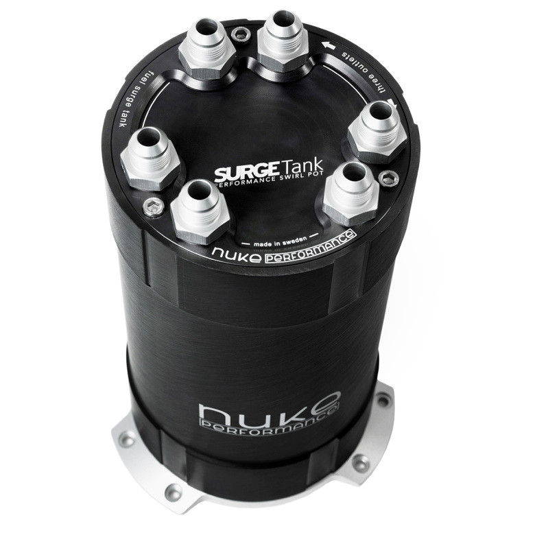 Nuke Performance 3-litrowy zbiornik surge tank drugiej generacji do zewnętrznych pomp paliwowych, dostępny z trzema wylotami do montażu maksymalnie trzech zewnętrznych pomp paliwowych. Najwyższa jakość połączona z wyjątkową wydajnością.