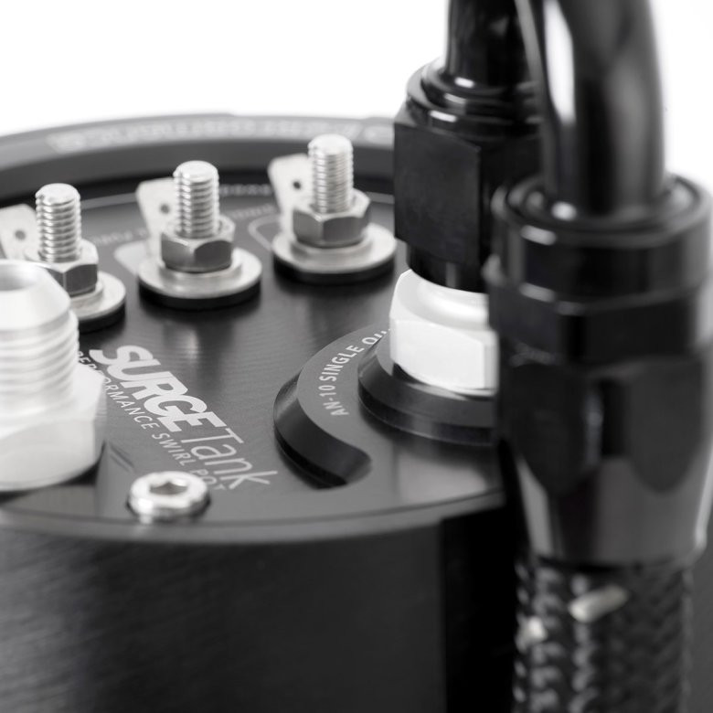 The Fuel Surge Tank works as a buffer so the fuel pumps are always supplied with fuel for high outputs as the return line from your engine routs straight back into the FST, it stays full at all times.