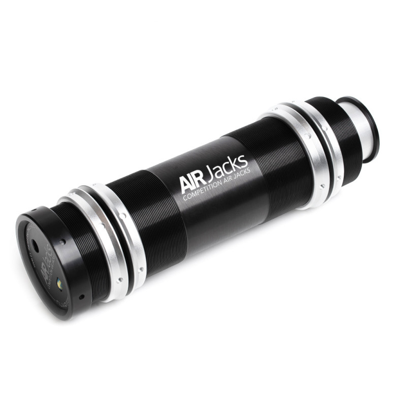 The body is made out of high strength, machined aluminum extrusion for the thinnest possible wall thickness to achieve the lowest possible weight without sacrificing functionality. It houses a high strength aluminum piston rod with an anodized finish for long lasting durability. The internal bearings are constructed of high strength, ultradurable, low friction polyoxymethylene - these air jacks are made tough to cope with the high demands from worldwide motorsports.