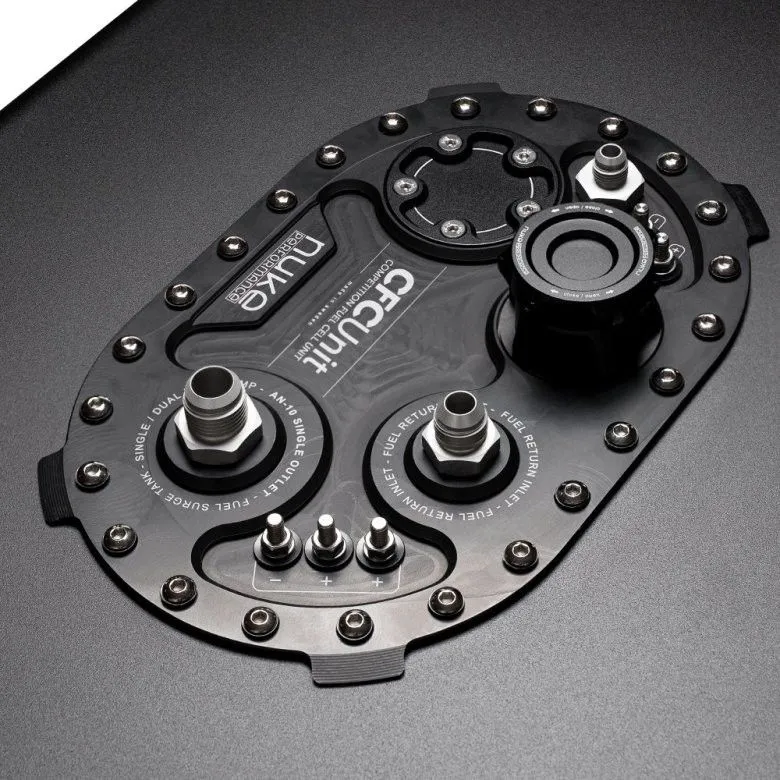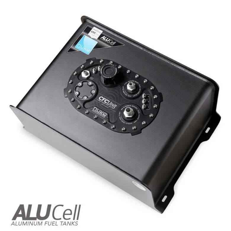 AluCell Aluminum Fuel Cells, a lightweight and affordable fuel cell combined with the Nuke Performance drop-in surge tank, the CFC Unit. This product offers an affordable solution for those who do not require FIA approval for professional racing, but still want all the benefits from the Nuke Performance CFC Unit. The drop-in fuel pump hanger with integrated surge tank provides this functionality featuring: 40 / 60 liter aluminum fuel cell Integrated 2 liter Fuel Surge Tank function 100% proof for petrol, methanol and E85 Integrated brackets for easy and secure mounting Fits single or dual high-pressure fuel pumps Single AN-10 Outlet and AN-6 vent safety valve Low profile fuel filler cap with integrated roll-over valve The Nuke Performance AluCell fuel cells are suitable for use with carburettor-based fuel systems and with the integrated CFC Unit from Nuke Performance. They eliminate the need for an external surge tank which would otherwise be needed when running a fuel cell, making it is a perfect alternative for fuel-injected systems. The AluCells are made of the highest quality aluminum for use with all types of fuels and is 100% proof for petrol, methanol and ethanol. Technical information : Competition Fuel Cell Unit: • CNC manufactured from aluminium alloy 6063. • Stainless steel bolts for long lasting function and appearance. • Surge tank holds a volume of approximately 2 liters. • Billet alumnium 6x10” plate with standard 24 bolt pattern. • Minimum mounting depth of 219mm. • All Viton o-rings and ethanol proof seals. • Outlet port : AN-10 (7/8 UNF), available as AN-8, AN-10 and AN-12 line. • Return port : AN-8 (3/4 UNF), available as AN-6, AN-8 and AN-10 line. • Vent port : AN-8 (3/4 UNF), available as AN-6. AN-8 and AN-10 line. • Delivered with 1x AN-8 (3/4 UNF) to AN-6 Male Vent, 1x AN-8 (3/4 UNF) to AN-8 Male, 1x AN-10 (7/8 UNF) to AN-8 Male and 1x AN-10 (7/8 UNF) to AN-10 Male fitting. Competition Fuel Cell Unit: • Corrosion resistance aluminum 5083 H111. • Welded by 5-axis robot from two piece aluminum sheets. • Integrated brackets, 4 x 8.5 x 23.5mm (0.33 x 0.92”). • Stainless steel 6x10” 24 bolt pattern flange. • Powder coated externals. • Safe for all type of fuels, including alcoholic fuels. Measurements : 40 liter AluCell Part # : 150-07-041 Length : 555 mm (21.85”) Depth : 377mm (14.84”) Height : 251mm (9.88”) Weight : N/A, including CFC Unit Mounting holes : 8.5 x 23.5mm (0.33 x 0.92”) Fits Fuel Level Sender : 150-FLS-09-02 (9" / 228mm) 60 liter AluCell Part # : 150-07-061 Length : 577 mm (22.71”) Depth : 555mm (21.85”) Height : 250mm (9.84”) Weight : N/A, including CFC Unit Mounting holes : 8.5 x 23.5mm (0.33 x 0.92”) Fits Fuel Level Sender : 150-FLS-09-02 (9" / 228mm) Included on package : 1 x AluCell Aluminum fuel cell 40liter (10.55 gallons) / 60liter (15.85 gallons) 1 x Nuke Performance Competition Fuel Cell Unit 1 x AN-10 (7/8 UNF) to AN-8 Male outlet fitting 1 x AN-10 (7/8 UNF) to AN-10 Male outlet fitting 1 x AN-8 (3/4 UNF) to AN-8 Male return fitting 1 x AN-8 (3/4 UNF) to AN-6 Male vent safety valve * no fuel pump is included Integrated 2 liter surge tank, billet fuel pump hanger for 1-2 fuel pumps The AluCell aluminum fuel cells come delivered with the Nuke Performance CFC Unit as a fill plate replacement. The unique CFC Unit from Nuke Performance is the perfect solution for a simplified high-performance fuel system where simplicity and durability are of the utmost importance. This setup eliminates the need for a space-consuming external surge tank. With all the needed fuel pumps mounted within the fuel cell itself, this is the only thing you need. This frees up space and weight and increases safety as fewer fuel line fittings are necessary and no external fuel pumps are used. Internal high-pressure fuel pumps, for any need between 200 - 2000hp The AluCell are delivered with the unique Nuke Performance CFC Unit with an integrated Fuel Surge Tank function and fits a single or dual high-pressure fuel pump from Deatschwerks, AEM, Ti Automotive, Walbro, Bosch, Fuelab, Aeromotive, and many more. It fits all common 39mm fuel pumps as well as the larger Deatschwerks DW400, Walbro GST450/GST520, Bosch BR540 and Aeromotive Stealth 450. This solution is ready to deliver steady fuel flow for demands anywhere between 200-2000 horsepower without fuel starvation, even during demanding driving conditions, thanks to the internal surge tank. The CFC Unit fits most common fuel pumps. Together with the Nuke Performance fuel pump mounting kits, it has never been this easy to set up a high-performance fuel system. How to mount fuel pumps within the AluCell fuel cell and surge tank? The single fuel pump mounted in the fuel cell functions as a pickup fuel pump that ensures that the high-pressure fuel pumps within the oversized 2 liter (0.53 gallons) surge tank always have enough fuel to maximize fuel flow and minimize the risk of starvation that can seriously harm your engine. For more information, download the product manual. The CFC Unit is delivered with everything you need to install the fuel pumps of your selection, but we recommend adding one of our fuel pump mounting kits for optimal functionality. All fuel pumps are securely mounted in all conditions thanks to the billet fuel pump brackets. Fuel Pump Mounting Kits : Learn more about fuel pump setup Additional Fuel Pumps : Explore our selection of fuel pumps Delivered with all fittings you need for a quick and easy installation The Nuke Performance CFC Unit comes with both an AN-10 (7/8 UNF) to AN-8 Male and AN-10 Male fitting to choose from, as well as an AN-8 (3/4 UNF) to AN-8 Male return fitting. The use of the oversized, high-flow AN-10 outlet combines the internal fuel pumps into one single fuel line and minimize the need for external equipment, hoses, and fittings. The rollover protected vent fittings are of AN-6 and can be swapped for AN-6 to AN-10 when needed. Addi