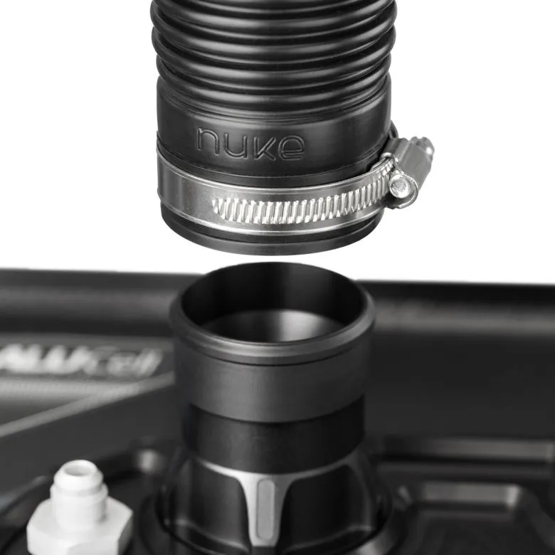 Nuke Performance Filler Cap and Fuel Hose Kit Steel Bracket with M6 Bolts for CFC Unit Featuring a lightweight design, quick lock mechanism, and a 5-bolt pattern, this filler cap is the ultimate solution for easy, secure installation on your aftermarket fuel cell or Nuke Performance CFC Units. With just a 90-degree turn, you can lock and unlock the cap with ease. Quick lock filler cap, with a 90-degree lock mechanism 50mm (2") anti-static nylon fuel filler hose Extremely lightweight and flexible fuel filler hose Universal fitment for your motorsports build Safe for all types of fuels, including alcoholic fuels Kit fits straight onto a CFC Unit equipped fuel cell Simplify your CFC Unit fuel-filling process with the Nuke Performance Filler cap and fuel hose kit for CFC Units. With its 5-bolt pattern and easy-to-use mounting accessories, installation is a breeze. This filler cap is compatible with standard gas station nozzles and fuel jug filler hoses, and it's safe for use with all types of fuels, including E85 and other alcoholic fuels. Thanks to the Viton seals and gaskets, you can trust that it will hold up to even the most demanding conditions. A filler cap with a true quick-lock mechanism that takes not more than a 90-degree turn to lock the filler cap into place. The Nuke Performance Remote quick lock filler cap is a piece of art, and we promise you that you will get addicted, opening and closing this aluminum masterpiece will blow your mind. With its easy 90-degree turn quick-lock mechanism, you can unlock and lock the cap with ease, making it perfect for motorsports applications where a remote filler solution is needed. It features a barb connection that fits onto the 50mm (2") fuel filler hose. Safe for all types of fuel, including alcoholic fuels The barb connection fits onto a 50mm (2") fuel hose Not only is this filler cap extremely convenient to use, but it's also built to last. It's safe for use with all types of fuels, including ethanol and methanol, and its durable construction means you can count on it to perform in even the most demanding conditions. The Nuke Performance Fuel Filler Hose Kit is the perfect solution for all of your fuel-filling needs. Its anti-static corrugated design allows for maximum flexibility. Thanks to the fuel-filling hose's lightweight construction, an 80% weight savings in comparison to commonly used aftermarket 50mm (2") fill hoses is achieved, which means it won´t add unnecessary weight to your vehicle, making it ideal for motorsports applications. Extremely flexible thanks to its corrugated design Very lightweight, with up to 80% weight savings Anti-static nylon hose and Viton bushings The Nuke Performance fuel filler hose is also highly durable, able to handle all types of fuels including E85 and other alcoholic fuels, even during long time periods. It is perfect for use with aftermarket fuel cells such as ATL, Pyrotect, AluCell, Fuel Safe, and others, and can easily connect to a remote fill neck or OEM filler cap. Whether you're using it in motorsports or just need a reliable and flexible fuel transfer hose for your vehicle, this hose has you covered. Remote Quick Lock Filler Cap Specifications: Barb connection 50,0 mm (2.0") Barb length 25mm (0.98") Bolt pattern PCD 5x60mm (2.36") / BCD 96mm (3.77") Bolt dimensions M6 (not included) Included gasket YES, Viton gasket Included wire YES, Stainless steel wire with heat shrink Outer diameter 110.5mm (4.35 ") Height over panel 12.0mm (0.47 ") Totalt depth 64.0 mm (2.51 ") Weight 366 g (0.80 lb) For motorsports use YES Fuel compatibility Petrol, Ethanol, Methanol, Race fuel, Diesel Part # 150-30-101 EAN 7340209505436 Fuel Filler Hose Kit, 90cm (3 feet) Specifications: Hose internal diameter 54.0 mm (2.13") Bushing internal diameter 50.0 mm (2.0") Collar length 29.0 mm (1.14") Bushing length 22.8 mm (0.89") Hose length (total) 915.5 mm (3 feet) Weight (ex. accessories) 213 g (0.47 lb) Weight (incl. accessories) 289 g (0.64 lb) Hose material Nylon (anti-static) Bushing material Viton (x2 included) Fuel compatibility Petrol, Ethanol, Methanol, Race fuel, Diesel For motorsports use YES Cut to length YES Part # 150-31-201 EAN 7340209505887 Nuke Performance Filler cap and fuel hose kit include: 1 x Filler cap body with barb connection for 50mm (2") hose 1 x Sealed and spring-loaded quick-locking filler cap 1 x Safety wire kit for M6 application 1 x Viton gasket, safe for all types of fuel 1 x Nylon corrugated fuel filler hose (90cm / 3ft) 2 x Viton bushings with an internal diameter of 50mm (2") 2 x Stainless steel hose clamps 1 x POM clamp insert (used if the hose is cut into length) 5 x K6S M6x12 stainless steel bolts 1 x Steel bracket or aluminum nut ring * 1 x Remote mount fill neck for the CFC Unit, for 50mm (2") hose