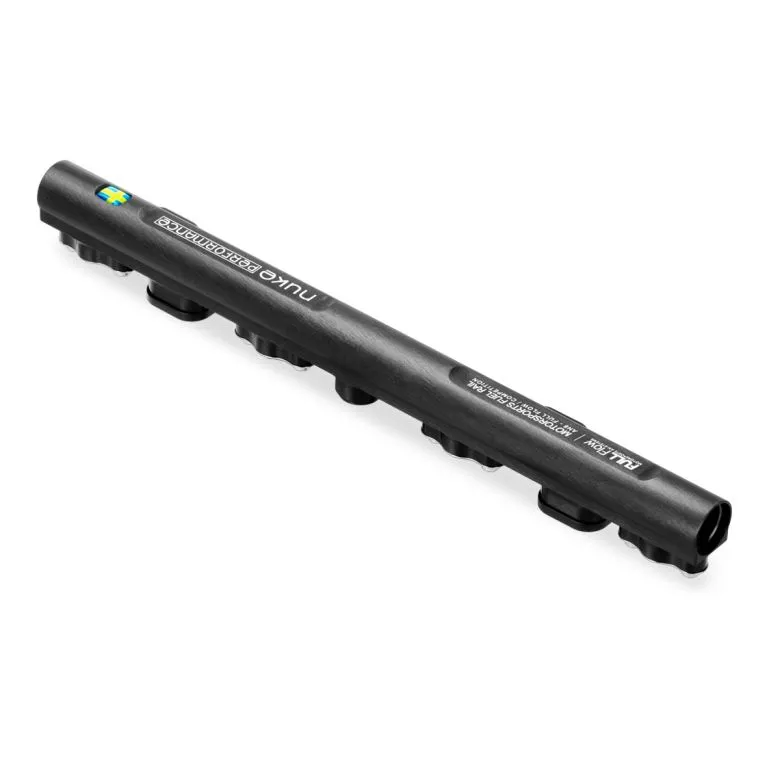 Nuke Performance fuel rail for the Honda 4cyl K-Series engines, oversized internals, lightweight design, and equipped with our unique injector safety clips. The Honda 4cyl K-Series fuel rail is delivered with brackets for all the Honda K-series intakes and allows you to go with AN fuel lines and aftermarket injectors for your classic Honda engine. Lightweight fuel rail that fits Honda K-series engines To be used with Bosch EV14S type injectors AN-8 ORB threads in both ends enable a high fuel flow Delivered with brackets for easy mount to the Honda K intakes AN-6 ORB side outlet/inlet for optional applications Safe for all types of fuels, including alcoholic fuels such as E85 The Nuke Performance's newest generation of fuel rails grants an easy fit to your engine with an extremely lightweight design. It uses the unique injector safety clips that fuel rails from Nuke Performance have become famous for, which grants a leakproof seal even during a crash where the fuel rail would get torn out of the intake manifold. Perfect fitment for all OEM Honda K20 and K24 intake manifolds, such as RBC, PRB, RBB, etc. Delivered with the needed hardware to mount to the intake.The Nuke Performance Honda 4cyl K-Series fuel rail is delivered with brackets for the K engine intake. Honda RBC OEM intake 2007-2011 Honda PRB OEM intake 2001-2006 Honda RBB OEM intake 2002-2008 Please be aware that this fuel rail is incompatible with the K20C1 engine; these engines use direct-injection and are not compatible with this fuel rail. The Nuke Performance fuel rail fits all the above OEM intakes and should also fit aftermarket ones built to OEM specifications. AN-8 ORB main ports and an AN-6 ORB side port, we offer a wide range of fittings and adapters to choose from.The fuel rail uses AN-8 ORB threaded fittings for each end and also offers an additional side port with AN-6 ORB thread. We offer a wide variety of fittings and our low-profile full-flow banjo fittings for a space-efficient installation. AN-8 ORB main ports and AN-6 ORB side port The fuel rail is delivered with an AN-6 ORB Plug for the side port but the main port fittings are sold as accessories. AN-8 ORB to AN-6 Male Part # : 700-04-104 AN-8 ORB to AN-8 Male Part # : 700-04-105 AN-8 ORB to AN-10 Male Part # : 700-04-106 AN-8 ORB to AN-6 Male Full Flow Banjo Part # : 710-01-105 AN-8 ORB to AN-8 Male Full Flow Banjo Part # : 710-01-106 AN-8 ORB to AN-10 Male Full Flow Banjo Part # : 710-01-107 AN-8 ORB Plug Part # : 700-04-116 AN-8 ORB to 1/8 NPT Female Adapter Part # : 700-04-129 All Nuke Performance fuel rails use unique Injector Safety Clips that ensure a perfect seal under all conditions.One distinctive feature of Nuke Performance is its use of injector safety clips, designed to uphold a flawless seal for injectors even under the strain of extreme fuel pressure. Ensures a safe and secure seal even during extreme fuel demands Whether during assembly, engine installation, or in the unfortunate event of an accident, these clips ensure the injectors remain securely attached to the rail. This design prevents any fuel spillage, even in scenarios where the fuel pump continues to run or there is residual pressure in the fuel system. Designed and developed in Sweden, guaranteeing the highest possible finish and quality.Developed and designed in Sweden, in-house by Nuke Performance. The Honda 4cyl K-Series fuel rail is of the highest possible quality and has the same hallmark as all the other lightweight motorsports products from Nuke Performance. The parts from Nuke Performance are co-developed with worldwide motorsports teams, making sure that functionality, as well as the design, meets the absolute highest standards, or even sets its own standard.Order your aftermarket fuel rail today and experience the convenience and safety of our easy-to-install fuel rails. There is no substitute for the quality of Nuke Performance. Nuke Performance Honda 4cyl K-series fuel rail Specifications:For more information about specifications, view the product sheet. Delivered with brackets for RBC intake 2007-2011PRB intake 2001-2006RBB intake 2002-2008 Injector type specification Bosch EV14 S style End inlet/outlet threads AN-8 ORB * Additional port thread AN-6 ORB * Length 326.00mm (12.83") Height 32.00mm (1.25") Weight 281.00g (9.91oz) Fuel compatibility Petrol, Gasoline, Ethanol, E85, E100, Methanol For motorsports use YES Replaces old part # 100-09-203 ** Part # 120-11-101 EAN 7340209509373 * not included, make sure to select the needed fittings when placing an order** old generation with smaller internals and NPT ports Nuke Performance Honda 4cyl K-series fuel rail includes: 1 x AN-8 ORB Full Flow fuel rail profile for Honda K-series 2 x Aluminum brackets for Honda K-series 1 x AN-6 ORB Plug 4 x Nuke Performance Injector safety clips 8 x MC6S M4x6mm stainless steel bolts 4 x K6S M6x10mm stainless steel bolts 2 x K6S M6x12mm stainless steel bolts
