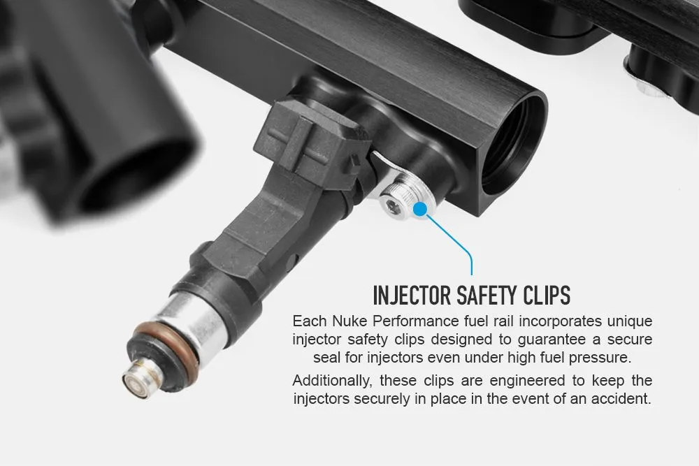 Nuke Performance fuel rail for the Mercedes 6cyl M104 engine, oversized internals, lightweight design, and equipped with our unique injector safety clips. The Mercedes 6-cylinder M104 fuel rail is delivered without model-adapted brackets but with M6 threads for custom bracket manufacturing and installation. The aftermarket fuel rail for the M104 engine allows you to go with AN fuel lines and aftermarket injectors for your classic Honda engine. Lightweight fuel rail that fits Mercedes M104 engines To be used with Bosch EV14 type injectors AN-8 ORB threads on both ends enable a high fuel flow Delivered without brackets - custom brackets need to be made AN-6 ORB side outlet/inlet for optional applications Safe for all types of fuels, including alcoholic fuels such as E85 The Nuke Performance's newest generation of fuel rails grants an easy fit to your engine with an extremely lightweight design. It uses the unique injector safety clips that fuel rails from Nuke Performance have become famous for, which grant a leakproof seal even during a crash where the fuel rail would get torn out of the intake manifold. For the Mercedes M104 engine, we do not provide you with the needed brackets for your installation. Custom brackets need to be manufactured by the installer, and the fuel rail is equipped with two mounting points with M6 threads. Model-adapted fuel rail, delivered without mounting brackets.The Nuke Performance Mercedes M104 fuel rail is delivered without the needed brackets, which have to be custom-made when installation is performed. Mercedes 6cyl M104 1988-1999 Please be aware that this fuel rail does not come with ready-to-fit brackets. As the M104 is rarely used with OEM plastic intake, we deliver the fuel rail without prepared mounting points for the custom bracket made by the installer. AN-8 ORB main ports and an AN-6 ORB side port, we offer a wide range of fittings and adapters to choose from.The fuel rail uses AN-8 ORB threaded fittings for each end and also offers an additional side port with AN-6 ORB thread. We offer a wide variety of fittings and our low-profile full-flow banjo fittings for a space-efficient installation. AN-8 ORB main ports and AN-6 ORB side port The fuel rail is delivered with an AN-6 ORB Plug for the side port but the main port fittings are sold as accessories. AN-8 ORB to AN-6 Male Part # : 700-04-104 AN-8 ORB to AN-8 Male Part # : 700-04-105 AN-8 ORB to AN-10 Male Part # : 700-04-106 AN-8 ORB to AN-6 Male Full Flow Banjo Part # : 710-01-105 AN-8 ORB to AN-8 Male Full Flow Banjo Part # : 710-01-106 AN-8 ORB to AN-10 Male Full Flow Banjo Part # : 710-01-107 AN-8 ORB Plug Part # : 700-04-116 AN-8 ORB to 1/8 NPT Female Adapter Part # : 700-04-129 All Nuke Performance fuel rails use unique Injector Safety Clips that ensure a perfect seal under all conditions.One distinctive feature of Nuke Performance is its use of injector safety clips, designed to uphold a flawless seal for injectors even under the strain of extreme fuel pressure. Ensures a safe and secure seal even during extreme fuel demands Whether during assembly, engine installation, or in the unfortunate event of an accident, these clips ensure the injectors remain securely attached to the rail. This design prevents any fuel spillage, even in scenarios where the fuel pump continues to run or there is residual pressure in the fuel system. Designed and developed in Sweden, guaranteeing the highest possible finish and quality.Developed and designed in Sweden, in-house by Nuke Performance. The Mercedes M104 fuel rail is of the highest possible quality and has the same hallmark as all the other lightweight motorsports products from Nuke Performance. The parts from Nuke Performance are co-developed with worldwide motorsports teams, making sure that functionality, as well as the design, meets the absolute highest standards, or even sets its own standard.Order your aftermarket fuel rail today and experience the convenience and safety of our easy-to-install fuel rails. There is no substitute for the quality of Nuke Performance. Nuke Performance Mercedes 6cyl M104 fuel rail Specifications:For more information about specifications, view the product sheet. Delivered with brackets for N/A * Injector type specification Bosch EV14 style End inlet/outlet threads AN-8 ORB ** Additional port thread AN-6 ORB ** Length 530.00mm (12.83") Height 32.00mm (1.25") Weight 388.00g (13.68oz) Fuel compatibility Petrol, Gasoline, Ethanol, E85, E100, Methanol For motorsports use YES Replaces old part # 100-04-209 *** Part # 120-14-101 EAN 7340209509632 * delivered without brackets, custom brackets need to be made by the installer** not included, make sure to select the needed fittings when placing an order*** old generation fuel rail with a different design and thread size Nuke Performance Mercedes 6cyl M104 fuel rail includes: 1 x AN-8 ORB Full Flow fuel rail profile for Mercedes M104 engine 1 x AN-6 ORB Plug 6 x Nuke Performance Injector safety clips 12 x MC6S M4x6mm stainless steel bolts 4 x K6S M6x10mm stainless steel bolts