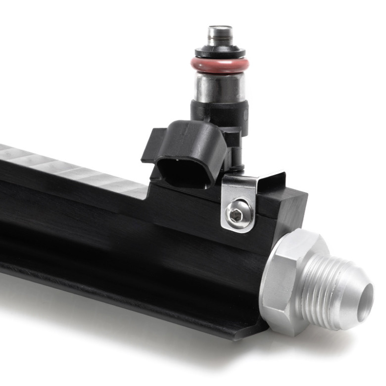 A Nuke Performance unique feature is the injector safety clips that ensure the injectors maintain a perfect sealing even during extreme fuel pressure usage. Whether during assembly, install on the engine or in the unfortunate case of an accident, the injectors will remain solidly on the rail. No fuel is spilled even if the fuel pump continues to run or there is latent pressure in the fuel system.
