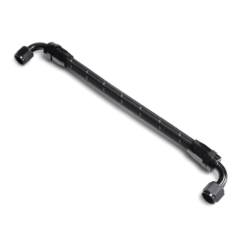 If wanted we provide this easy setup for a front mount hose kit / plumbing kit that makes a true bolt-on solution for installation for the LS engine range. Comes with 2x AN-8 90° hose ends with an E85 proof braided fuel hose.