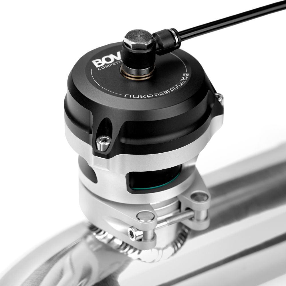 An atmospheric (such as the BOV50c from Nuke Performance ) BOV releases the boost into the atmosphere when the throttle closes, preventing compressor surge and ensuring the turbo´s longevity. A BOV is essential for the turbo´s lifespan but also plays a significant role in enhancing performance. By releasing excess boost, the BOV prevents compressor surge and reduces lag by allowing the turbo to spin up more quickly when the throttle valve is opened again.