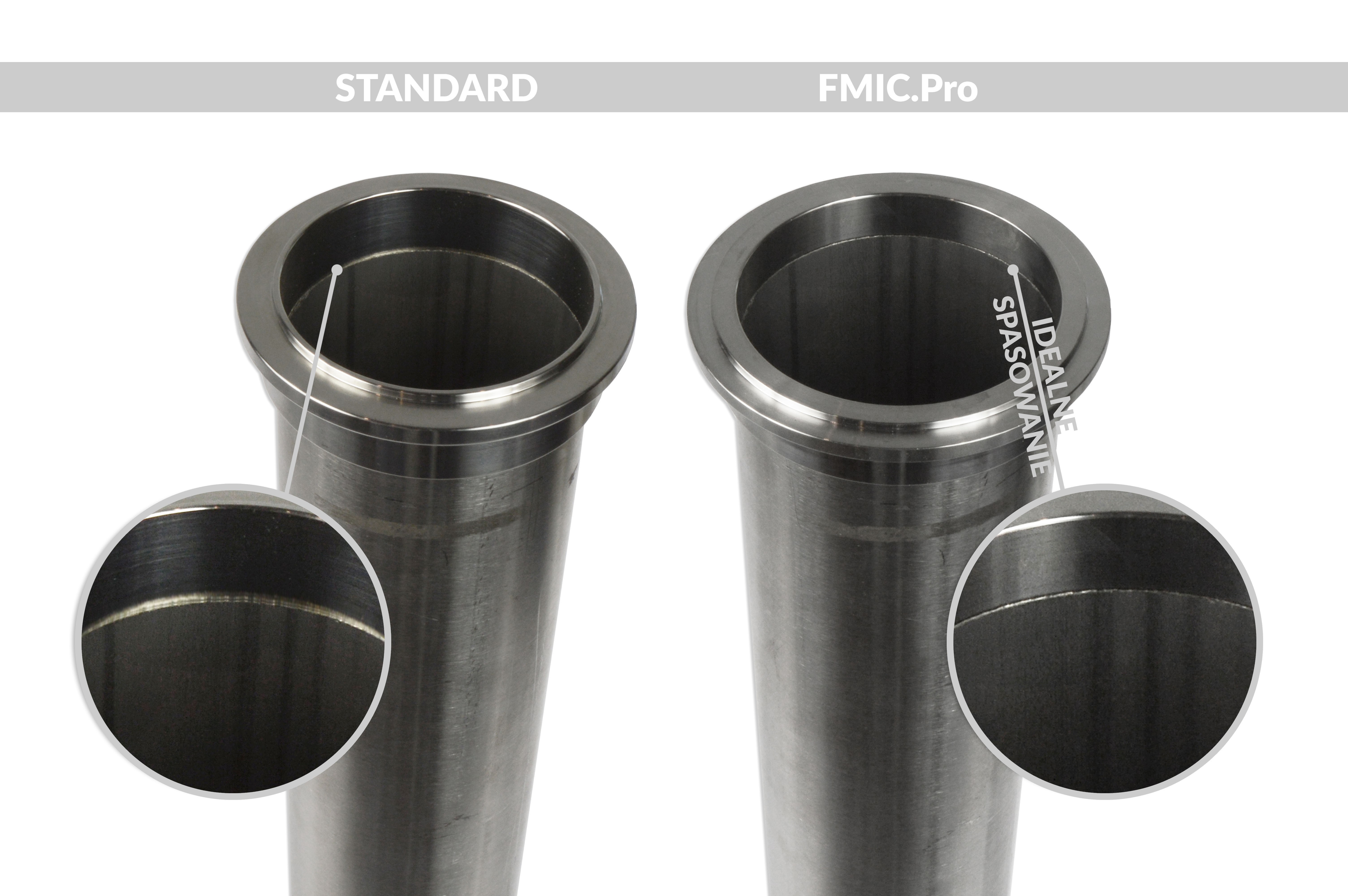- Obejma "Hard-steel" zastosowana w V-bandach FMIC.Pro jest znacznie grubsza, posiada solidniejsze zgrzewy przez co jest dużo wytrzymalsza od standardowej.
