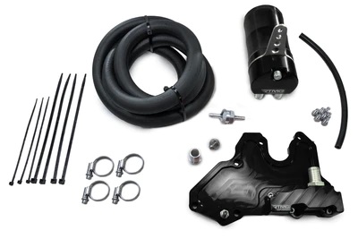 Jednym z częstych problemów silników TSI jest odkładanie się nagaru na zaworach dolotowych. Ze względu na układ bezpośredniego wtrysku, w którym paliwo jest wtryskiwane bezpośrednio do komory spalania, zawory dolotowe nie są przepłukiwane paliwem, przez co na zaworach gromadzą się osady węglowe, powstające z oparów oleju pochodzących z fabrycznego układu PCV. Zestaw RTMG Oil Catch Can może ograniczyć odkładanie nagaru na zaworach dolotowych nawet o 60%. Catch can zapobiega także gromadzeniu się oleju w intercoolerze i przewodach intercoolera. Nasz zaawansowany, trójstopniowy system filtracji usuwa lżejsze opary, a dzięki unikalnemu bezpośredniemu kanałowi do dna zbiornika skutecznie odprowadza cięższe opary olejowe, co pozwala oczyścić nawet do 99% zawracanych oparów. Specyfikacja: CNC Billet Oil Catch Can Monoblock Three Stage Baffling System Kontrola poziomu oleju za pomocą bagnetu Szybkie opróżnianie dzięki zaworowi spustowemu Serwisowalna, trójdzielna konstrukcja 16 mm lub AN10 Barb Fittings Redukcja odkładania nagaru Małe wymiary i pojemność: 120 x 80 mm – 300 ml Duże wymiary i pojemność: 160 x 80 mm – 400 ml