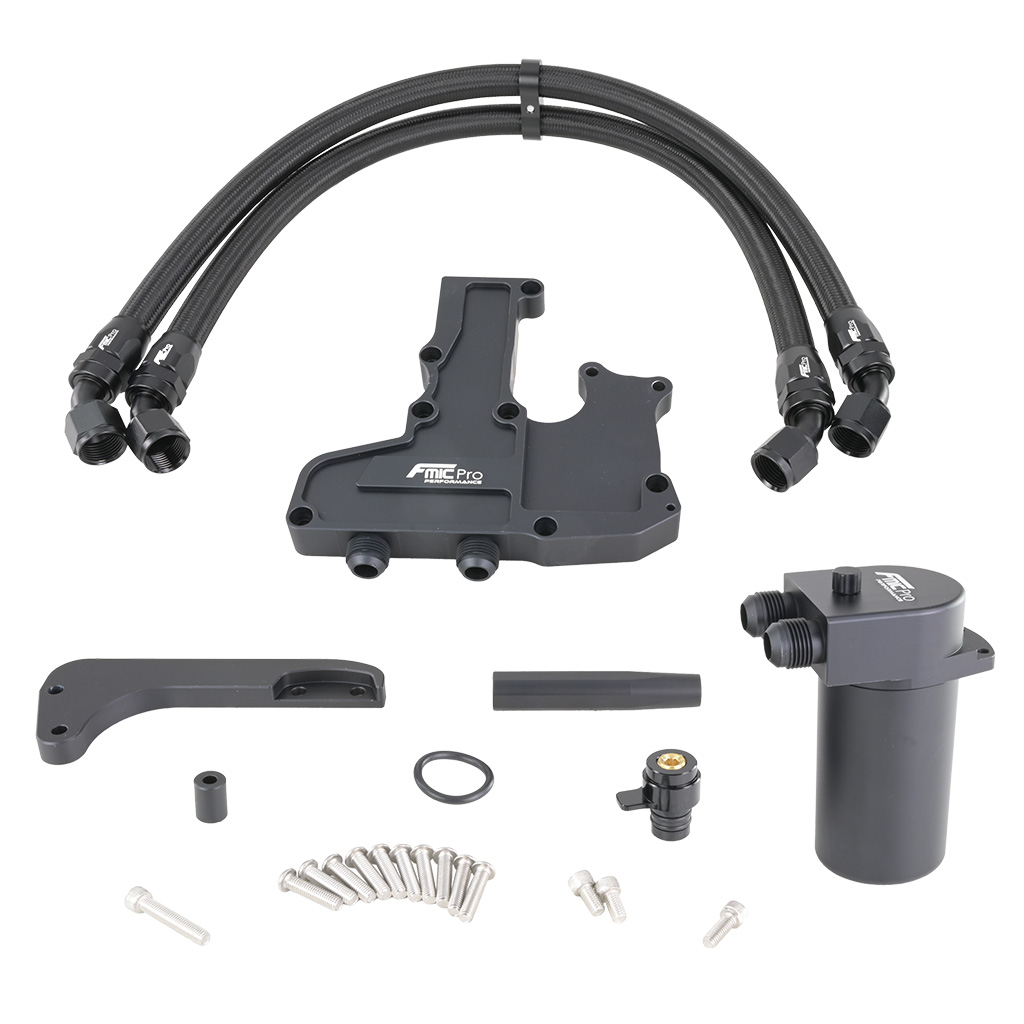 Oil Catch Tank FMIC.Pro Audi A3 A4 TT Seat Leon Skoda Octavia VW Golf MK6 GTI 2.0 EA888 Gen2 Oil Catch Tank FMIC.Pro to dedykowany zestaw do separacji oparów olejowych opracowany specjalnie dla silników EA888 Gen2 2.0 TFSI/TSI. Jego zadaniem jest skuteczne wychwytywanie oparów oleju i zanieczyszczeń zanim trafią one do układu dolotowego. W silnikach turbodoładowanych znacząco poprawia czystość dolotu i stabilność pracy jednostki, eliminując typowe problemy takie jak spadki osiągów, gromadzenie nagaru, zaolejenie intercoolera oraz ryzyko nieszczelności układu doładowania. System FMIC.Pro jest łatwy w montażu, prosty w obsłudze i zalecany na każdym etapie modyfikacji – zarówno w samochodach seryjnych, jak i tych z mocno zwiększonym doładowaniem. Podczas pracy silnika część gazów spalania przedostaje się do skrzyni korbowej. Wraz ze wzrostem mocy i ciśnienia rośnie ilość oparów oleju odprowadzanych przez układ PCV. W seryjnym rozwiązaniu wracają one do dolotu, powodując: • spadek jakości spalania i obniżenie mocy • odkładanie nagaru na zaworach dolotowych • gromadzenie oleju w intercoolerze i spadek jego wydajności • obniżenie oktanowości mieszanki paliwowo-powietrznej Oil Catch Tank FMIC.Pro eliminuje te problemy, wykorzystując wielostopniową filtrację. Oczyszczone gazy wracają do układu dolotowego, natomiast olej i zanieczyszczenia pozostają w zbiorniku. • separuje opary oleju chroniąc dolot i zachowując wysoką oktanowość mieszanki • ogranicza odkładanie nagaru i poprawia przepływ powietrza • zapobiega gromadzeniu oleju w przepustnicy, kolektorze i intercoolerze • dwuczęściowy zbiornik umożliwia szybkie opróżnianie • przewody odporne na olej, temperaturę i uszkodzenia mechaniczne • zbiornik wykonany w całości z aluminium 6061-T6 obrabianego CNC • czarna anoda odporna na olej, temperaturę i korozję • przewody AN10 w nylonowym oplocie – trwałe i odporne • adapter skrzyni korbowej CNC w czarnej anodzie • uchwyty montażowe zapewniają stabilne mocowanie Zestaw zawiera: zbiornik z bagnetem kontrolnym i króćcami AN10 • przewody AN10 w nylonowym oplocie • adapter odpowietrzenia pokrywy zaworowej CNC • uchwyty montażowe • śruby Dedykowany do silnika EA888 Gen2 2.0 TSI Volkswagen VW Golf 6 GTI 2.0 TSI 2009–2013 VW Jetta 5 2.0 TSI 2008–2010 VW Passat B6 2.0 TSI 2008–2010 VW Passat CC 2.0 TSI 2008–2012 VW Eos 2.0 TSI 2008–2015 VW Tiguan 1 2.0 TSI 2008–2015 VW Beetle 2.0 TSI 2012–2014 Audi Audi A3 8P 2.0 TFSI 2008–2013 Audi A4 B8 2.0 TFSI 2008–2015 Audi A5 8T 2.0 TFSI 2008–2016 Audi TT 8J 2.0 TFSI 2008–2014 Audi Q5 2.0 TFSI 2009–2012 Seat Seat Leon 1P 2.0 TSI 2009–2012 Seat Altea / XL 2.0 TSI 2008–2015 Škoda Škoda Octavia II 2.0 TSI 2008–2013 Škoda Superb II 2.0 TSI 2008–2014 Škoda Yeti 2.0 TSI 2009–2017