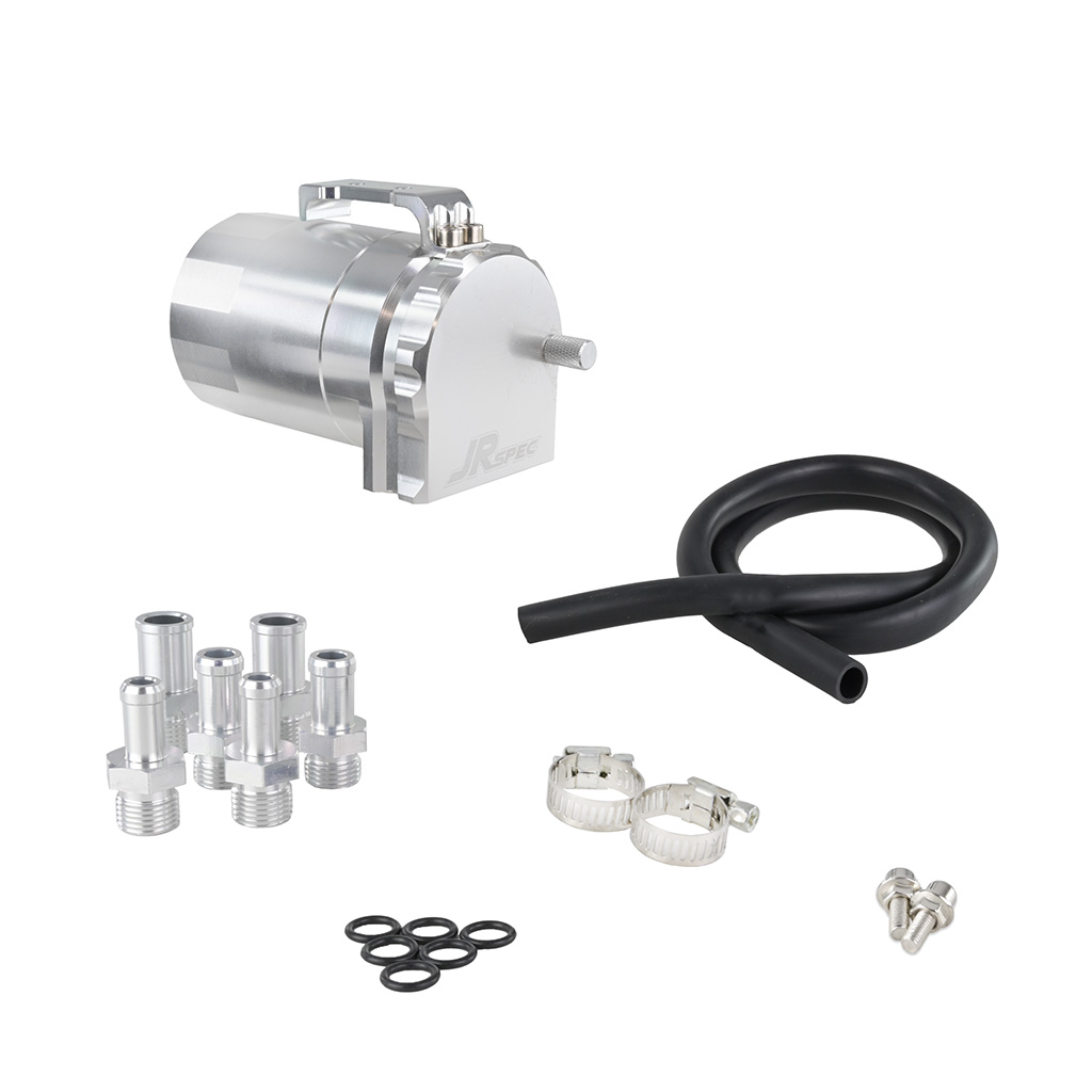 Oil Catch Tank JRspec 350ml z króćcami 6 8 10mm Uniwersalny zbiornik Oil Catch Tank JRspec o pojemności 350ml, przeznaczony do montażu w układach odmy silnika. Jego zadaniem jest utrzymanie układu dolotowego oraz przepustnicy w czystości, poprzez skuteczne oddzielanie oparów oleju. Zanieczyszczony olej zostaje odseparowany w zbiorniku dzięki podwójnemu systemowi przegrody separacyjnej, a oczyszczone powietrze wraca z powrotem do dolotu. Zbiornik wykonany jest z wysokiej jakości aluminium, które zapewnia niską masę, doskonałe odprowadzanie ciepła oraz zwiększoną efektywność separacji oparów i zanieczyszczeń. Zalety: -Wbudowany bagnet-Przedłuża żywotność turbosprężarki i kompresora -Ogranicza powstawanie nagaru w zaworach EGR i kolektorze dolotowym -Utrzymuje czystość powietrza w układzie dolotowym -Zmniejsza ilość cząstek stałych w układzie wydechowym -Zapewnia prostą obsługę i szybkie opróżnianie zbiornika Zawartość: -Zbiornik (Oil Catch Tank) 350ml -Króćce 2x(6mm, 8mm, 10mm)-Przewód silikonowy-Zestaw montażowy Wymiary: -Zbiornik: 110mm wysokość x 68mm średnica -Szerokość z mocowaniem: 82mm, rozstaw otworów od środka do środka: 20mm -2 wejścia na króćce, w zestawie: 6mm, 8mm, 10mm