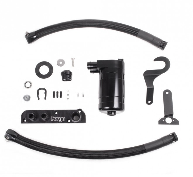 Zestaw Forge Motorsport oil catch tank jest efektem wielu miesięcy intensywnych prac badawczo-rozwojowych prowadzonych przez wewnętrzny zespół Forge. Rezultatem jest jeden z najbardziej kompletnych systemów separacji oleju dostępnych obecnie na rynku. Produkt został zaprojektowany tak, aby wychwytywać maksymalną ilość szkodliwych zanieczyszczeń, takich jak osady olejowe, niewykorzystane opary paliwa oraz wilgoć, które w standardowym układzie wracałyby do dolotu silnika. Rozległe testy potwierdziły skuteczność zestawu w ograniczaniu powstawania szlamu i nagaru, co pozwala silnikowi TSI w Golfie Mk5 GTI oddychać swobodniej i pracować wydajniej. Jest to realny produkt poprawiający osiągi, szczególnie polecany właścicielom Mk5 GTI planującym późniejsze modyfikacje zwiększające moc. Zbiornik o pojemności 0.4 l (400 cc) wyposażono w liczne rozwiązania ułatwiające kontrolę i opróżnianie, w tym bagnet umożliwiający szybkie sprawdzenie poziomu. Konstrukcja zestawu została dokładnie przemyślana. Wewnętrzna rurka wykonana jest z antystatycznej, gładkiej, odpornej na paliwo gumy nitrylowej. Zewnętrzna osłona składa się z wzmocnionego oplotu ze stali nierdzewnej – częściowego oplotu wewnętrznego oraz pełnego oplotu zewnętrznego. Układ ten zapewnia odporność na rozszerzanie pod ciśnieniem oraz zapadanie pod wpływem podciśnienia, a także umożliwia pracę w zakresie temperatur od -54°C do +150°C. Zestaw zawiera również dwie wzmocnione, odporne na olej przewody z czarnym oplotem, które po montażu zapewniają wygląd zbliżony do fabrycznego. Highlights Pojemność 0.4L Bagnet do łatwej kontroli poziomu 2 wysokiej jakości przewody odporne na olej, wzmocnione stalą nierdzewną, z czarnym oplotem W pełni zmontowany zestaw z dopasowanymi złączkami OEM Wewnętrzny przewód z antystatycznej gumy nitrylowej odpornej na paliwo Zewnętrzny oplot ze stali nierdzewnej odporny na ciśnienie i podciśnienie Zakres temperatur pracy: -54°C do +150°C Prosty montaż – wszystkie elementy i instrukcja w zestawie Uwaga: osłona silnika nie pasuje bez modyfikacji Zastosowanie: Volkswagen Golf Mk5 ED30 / GTI