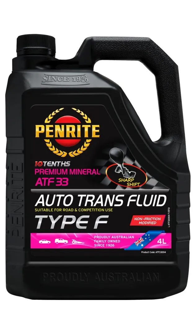 Penrite ATF 33 Mineral 4L ATF 33 jest specjalistycznym, wysokiej jakości mineralnym, pozbawionym modyfikatorów tarcia, czerwonym płynem do automatycznych skrzyń biegów przeznaczonym do przekładni typu F, zgodnych ze specyfikacją M2C33-F / G lub Ford SQM-2C9007-AA. FACTORY RACING Produkty Penrite 10 Tenths Racing są używane przez zespoły fabryczny zespół wyśigowy PENRITE, aby zapewnić najwyższą wydajność i ochronę. Olej bazowy Mineral ZASTOSOWANIE ATF 33 jest przeznaczony do stosowania w starszych skrzyniach biegów Forda i układach wspomagania kierownicy wszędzie tam, gdzie zalecany jest płyn Ford typu F lub G. Może być również stosowany w manualnych skrzyniach biegów, które są zgodne ze specyfikacją F/G. Wszystkie pojazdy Forda sprzed 1980 r., Modele Meteor serii GA i GB oraz niektóre modele Austin, Citroen, Daihatsu, Daimler, Hillman, Humber, Jaguar, Leyland, MG, Mazda, Nissan (Datsun) , Range Rover, Riley, Rolls Royce, SAAB, Suzuki, Toyota, Triumph, Vanden Plas, Volvo i Wolseley. W razie wątpliwości prosimy o kontakt z infolinią techniczną Penrite. ATF 33 nadaje się również do przekładni samochodowych typu drag, w których wymagany jest płyn bez modyfikatorów tarcia. Idealny do stosowania w przekładniach Turbo 350 i 400 oraz innych, które mogą wymagać tego rodzaju płynu, aby poprawić przenoszenie mocy bez uślizgu skrzyni. ATF 33 nie należy stosować tam, gdzie określono płyny typu Dexron® lub Mercon. Nie nadaje się do pojazdów drogowych, w których wymagana jest płynna zmiana biegów lub w ramach serwisu gwarancyjnego. Zastosowanie tego produktu w takich przekładniach może spowodować uszkodzenie powierzchni ciernych. Sprawdź Przewodnik po zaleceniach Penrite lub zadzwoń do Oil Europe, jeśli masz jakiekolwiek wątpliwości dotyczące korzystania z tego produktu. ATF 33 nadaje się do stosowania w samochodach osobowych, lekkich samochodach dostawczych