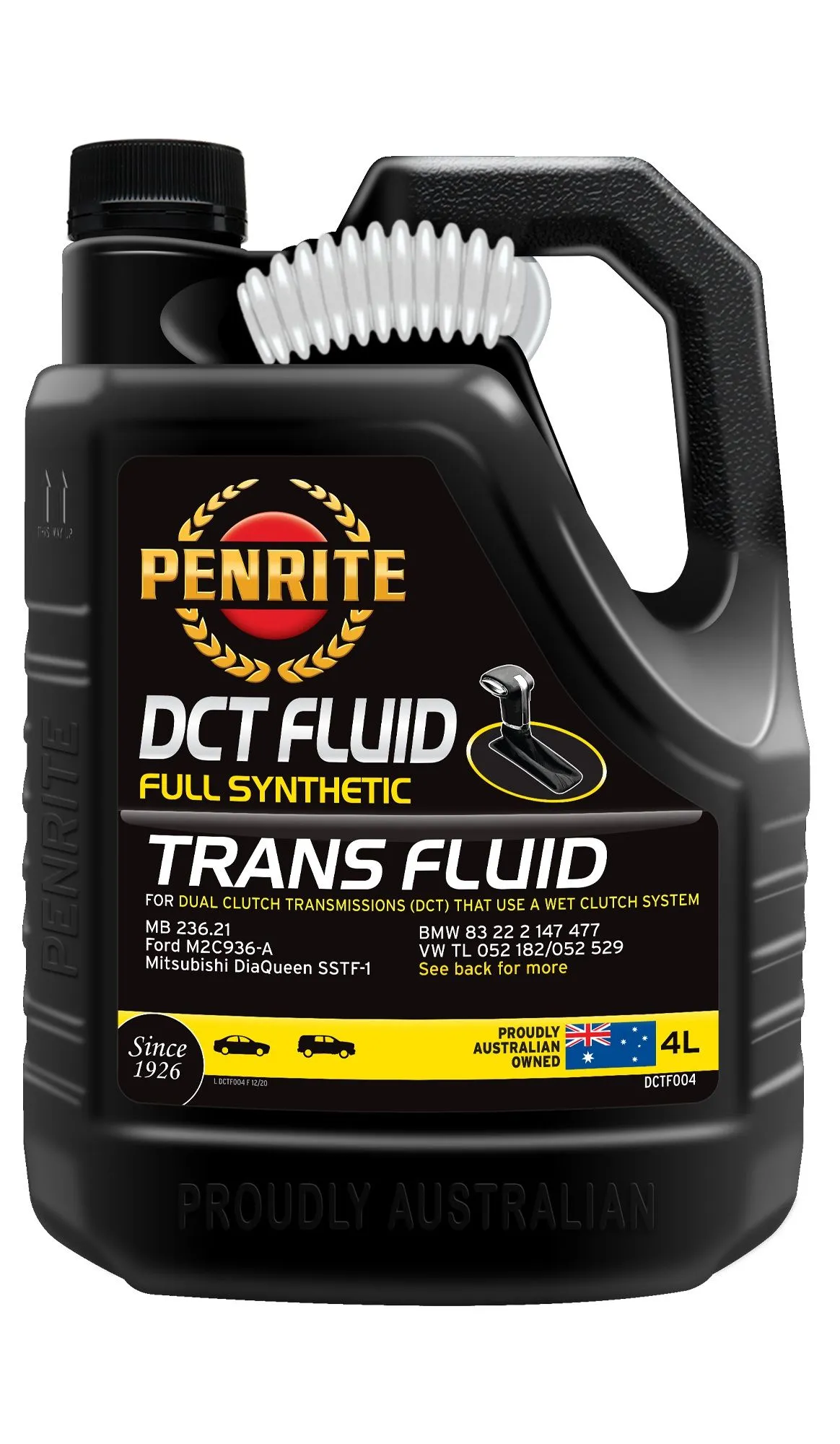 Penrite DCT Fluid Full Synthetic 4L DCT Fluid to bardzo zaawansowany, syntetyczny olej do dwusprzęgłowych skrzyń biegów (DCT), nadający się do skrzyń wyposażonych w mokre sprzęgło. Produkowany jest na bazie zaawansowanych olejów syntetycznych i wykorzystuje najnowszą technologię dodatków do zastosowań w wielu współczesnych rodzajach mokrych skrzyń biegów DCT. Olej bazowy Full Synthetic DCT Fluid został zaprojektowany do użytku w samochodach osobowych, pojazdach 4x4 i lekkich samochodach dostawczych wyposażonych w 6- lub 7-biegowe skrzynie biegów DCT z mokrym sprzęgłem. Zapewnia on wydajność, przeciwdziała drganiom, płynne zmiany biegów oraz doskonałą reakcję skrzyni biegów dzięki zoptymalizowanym właściwościom tarcia, co przekłada się na oszczędność paliwa i ochronę wewnętrznych elementów skrzyni biegów.DCT Fluid nadaje się do użytku w skrzyniach DCT produkowanych przez Getrag, ZF i Borg-Warner, które znajdują się w pojazdach Forda, Volvo, BMW, Dodge'a, Chryslera, Mitsubishi, Peugeota, Porsche, Citroena, Mercedesa-Benz oraz w samochodach marki VW i Skoda od 2003 roku (znane również jako skrzynie DSG - Direct Shift Gearbox) oraz w skrzyniach Audi S-Tronic.DCT Fluid NIE JEST PRZEZNACZONY do użytku w suchych skrzyniach DCT. W takich przypadkach należy używać odpowiedniego oleju dostarczanego przez dealera. Ten olej NIE MOŻE być używany w konwencjonalnych automatycznych skrzyniach biegów, skrzyniach bezstopniowych CVT ani skrzyniach manualnych.Prosimy o konsultację z Przewodnikiem Rekomendacji Olejów Penrite w celu uzyskania informacji o odpowiednich zastosowaniach. ZALETY: Wydajnie przeciwdziała drganiom Syntetyczne bazy zapewniają długotrwała wydajność Zastosowanie w wielu pojazdach dla mokrych skrzyń biegów DCT Minimalizuje tarcie dla płynnych zmian biegów Doskonała ochrona przed zużyciem zapewnia wydłużone życia skrzyni biegów Utrzymuje oszczędność paliwa