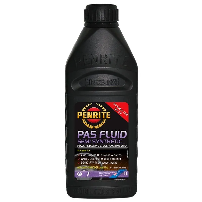Penrite PAS Fluid Full Synthetic 1l Power Assisted Steering jest przeznaczony do stosowania w samochodach Land Rover ACE i w układach wspomagania kierownicy. Olej bazowy Semi Synthetic Zalety minimalizuje drgania i hałas, wydłuża żywotność Płyn PAS (Power Assisted Steering) jest przeznaczony do stosowania w samochodach Land Rover ACE i w układach wspomagania kierownicy. Odpowiedni również do stosowania w układach wspomagania kierownicy, które wymagają płynu do przekładni automatycznych PAS001 i we wszystkich układach wspomagania kierownicy samochodów Chrysler / Jeep oraz GM / Opel / GMC produkowanych w USA. Może być stosowany jako olej 7.5W do widelców motocykli.Inne zastosowania obejmują układy wspomagania kierownicy i zawieszenia - Aston Martin, BMW, Dodge, Ferrari, Ford, Holden/HSV, Hyundai, Infinity, Jaguar, Jeep, Kia, Mazda, Mercedes, Nissan, SAAB, Subaru, Volvo i wiele innych. ZALETY Olej bazowy- półsyntetyczny Minimalizuje drgania i hałas Wydłuża żywotność i uszczelnienia Dobra płynność w niskich temperaturach Chroni przed rdzą i korozją. DANE CHARAKTERYSTYCZNE Kolor - zielony Gęstość w 15°C, kg/l - 0,860 Lepkość kinematyczna, cSt w 40°C - 25,6 Lepkość kinematyczna, cSt w 100°C - 6.4 Wskaźnik lepkości -196 Lepkość, Brookfield, cSt @ -40° - 4500 Fosfor, % mas. - 0,021 SPECYFIKACJA AMC 4124 Chrysler MS-5931 Chrysler MS-9462 Esso EZL 998 (Jaguar S) Ford M2C128-C Ford M2C128-D Ford M2C195-A (Power steering only) GM 9985819 GM 9985835 Hyundai PSF-3 Kia PSF-3 Land Rover STC 50717 (ACE) MB 236.3. MB 341.0. Opel 90 513486 PAS 14315 Pentosin CHF 4548 Pentosin CHF 7.1 VW TL VW-570-26 ZF TE ML 09 ZF TE ML 09B
