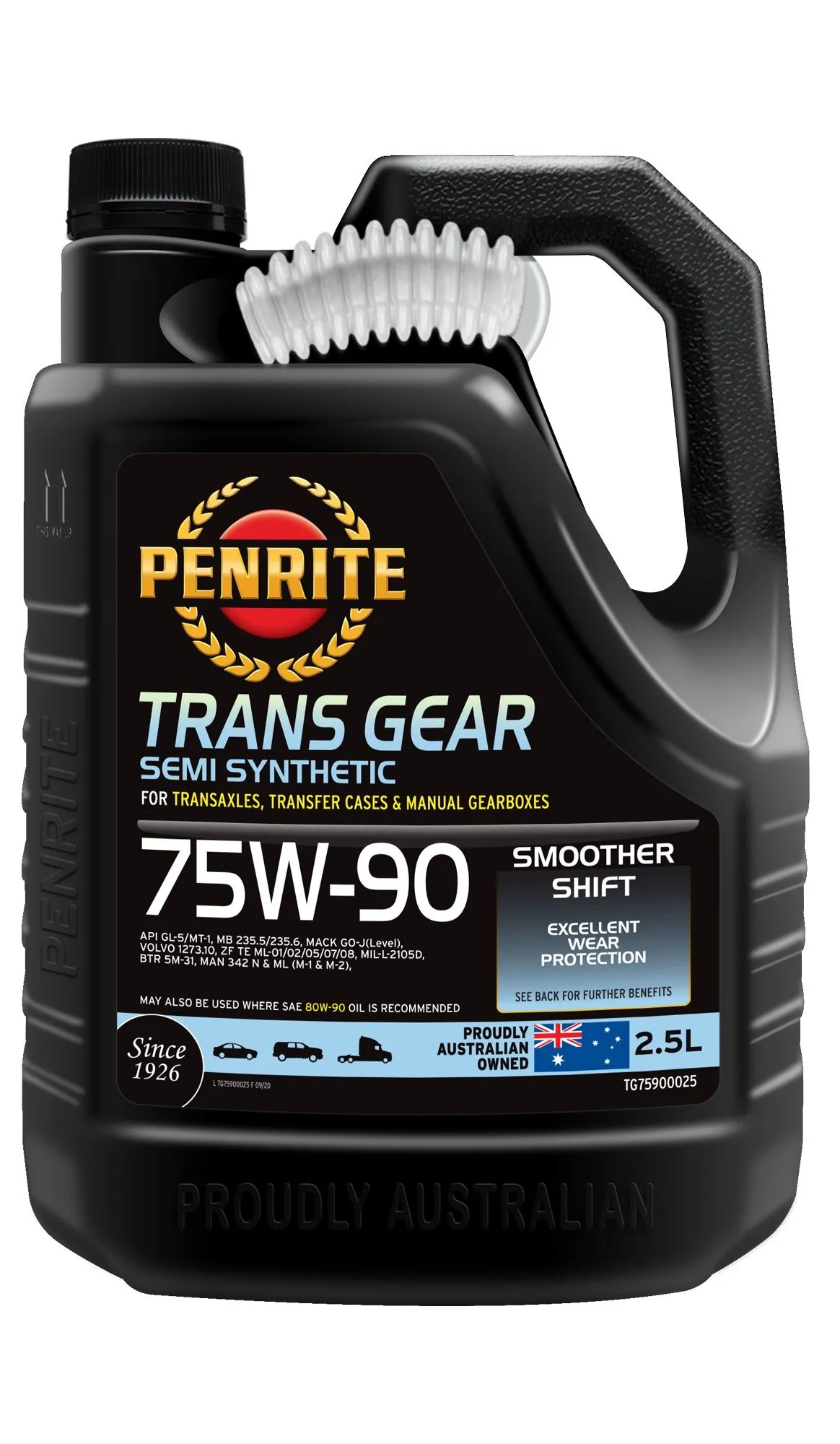 Penrite Trans Gear 75W-90 Semi Synthetic 2.5L Bardzo wydajny, półsyntetyczny olej klasy SAE 75W-90 przeznaczony do manualnych skrzyń biegów i układów transaxle. Olej bazowy Semi Synthetic Trans Gear 75W-90 to bardzo wydajny, półsyntetyczny olej klasy SAE 75W-90 przeznaczony do manualnych skrzyń biegów i układów transaxle. Wyprodukowany z mieszanki wysoce rafinowanych olejów bazowych, najnowszych dodatków, modyfikatorów tarcia oraz zaawansowanych modyfikatorów lepkości. Spełnia normy API MT – 1 i GL-5 oraz normy wielu innych producentów. ZASTOSOWANIE Trans Gear 75W-90 to bardzo uniwersalny produkt, który może być używany w skrzyniach biegów, skrzyniach rozdzielczych, układach transaxle i mechanizmach różnicowych w wielu samochodach osobowych, z napędem 4WD oraz lekkich i ciężarowych samochodach dostawczych, gdzie wymagane są oleje SAE 75W-90 spełniające normy API GL-4 lub GL-5. Trans Gear 75W-90 może być również używany we wszystkich mechanizmach różnicowych, które wymagają oleju 80W-90, w tym w mechanizmach różnicowych w samochodach ciężarowych, gdzie wymagany jest olej tego rodzaju. Trans Gear 75W-80 może być również używany w manualnych skrzyniach biegów w samochodach ciężarowych i autobusach, gdzie wymagane są oleje 80W-90 spełniające normy API GL-5, które jednak nie zapewniają prawidłowego przełożenia biegów. Może być używany w niektórych skrzyniach biegów wyprodukowanych przez Hino, MAN, Mercedes-Benz i Volvo. ZALETY PRODUKTU Płynne przełożenie w trakcie całego okresu między wymianami oleju Zwiększona ochrona przed utlenianiem, mniejsze gromadzenie się szkodliwych osadów Doskonała ochrona przed zużyciem Chroni przed wykruszaniem się biegów Może wydłużyć interwały wymiany oleju w porównaniu z konwencjonalnymi olejami przekładniowymi NORMY BRANŻOWE API GL-5 API MT-1 China National GB 13895-1992 Mack GO-J (level) MAN 342 M1 MAN 342 M2 MAN 342 ML MAN 342 N MB 235.5. MB 235.6. MIL-L-2105D Volvo 1273.10 ZF TE ML 05 ZF TE ML 07 ZF TE ML 08 ZF TE-ML 01 ZF TE-ML 02