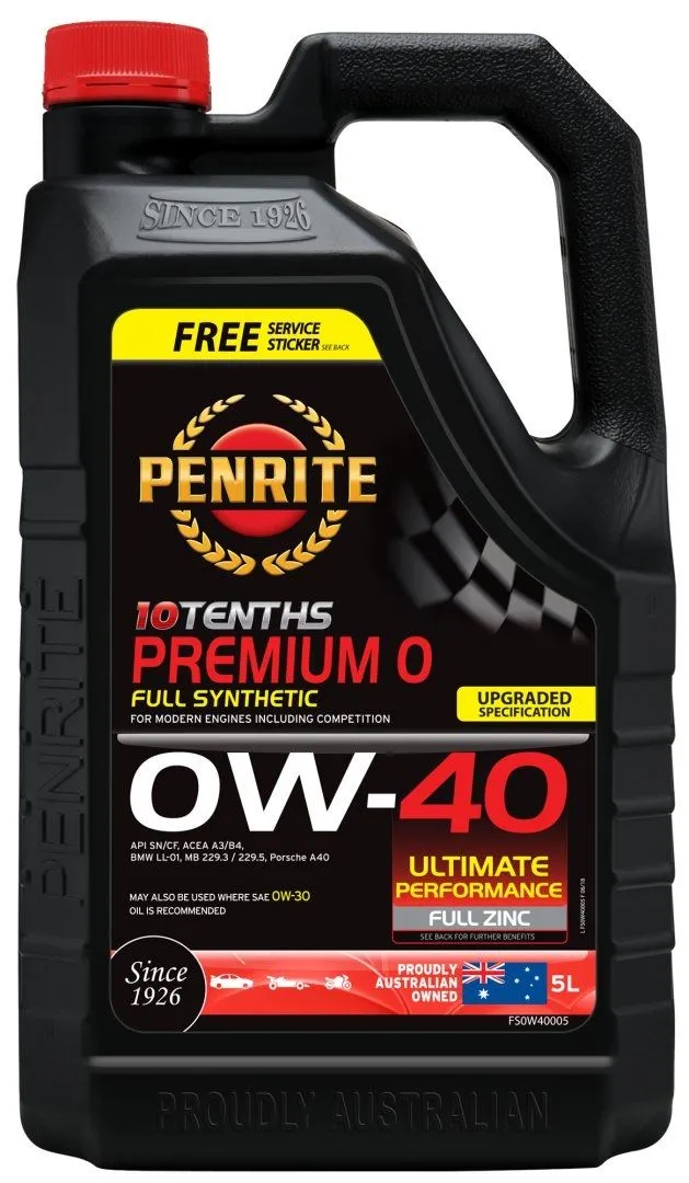 Penrite 10 Tenths Premium 0 0W-40 Full Synthetic 5L Najwyższej jakości w pełni syntetyczny olej, wyprodukowany na bazie PAO , klasy SAE 0W-40. Jest przystosowany do nowoczesnych silników, niezawierający modyfikatorów tarcia. Produkt zawiera pakiet dodatków FULL ZINC+ (przekraczający poziom 1800 ppm ), dzięki czemu zapewnia doskonałą ochronę oraz znakomite osiągi silnika. Lepkość 0W-40 Olej bazowy Full Synthetic Rodzaje paliwa Petrol / Diesel, Diesel, Petrol, LPG, Racing Zalety wzbogacony dużą zawartością cynku (Full Zinc) Premium 0 to najwyższej jakości w pełni syntetyczny olej, wyprodukowany na bazie PAO , klasy SAE 0W-40. Jest przystosowany do nowoczesnych silników, niezawierający modyfikatorów tarcia. Produkt zawiera pakiet dodatków FULL ZINC+ (przekraczający poziom 1800 ppm ), dzięki czemu zapewnia doskonałą ochronę oraz znakomite osiągi silnika. Premium 0 przewyższa normy API SN/CF, ACEA A3/B3 oraz wiele innych norm producentów. ZASTOSOWANIE Premium 0 jest przeznaczony do stosowania w nowoczesnych silnikach o wysokich osiągach, zarówno w warunkach drogowych jak i wyścigowych. Jest odpowiedni do nowoczesnych silników 4-, 6- i 8+-cylindrowych, z wieloma wałkami rozrządu, wielozaworowych, w tym VVT, wolnossących, doładowanych i turbodoładowanych, w tym do silników wysokoprężnych małej mocy. Premium 0 jest odpowiedni do warunków drogowych jak również rajdowych w wielu rodzajach pojazdów. Może być stosowany tam, gdzie wymagany jest olej klasy SAE 0W-30 i SAE 5W-40. Może być używany w silnikach benzynowych i wysokoprężnych wyprodukowanych do 2008r, gdzie wymagana jest specyfikacja ACEA A3/B4. Premium 0 jest odpowiedni do stosowania w motocyklach czterosuwowych z mokrym sprzęgłem. Rodzaje paliwa Premium 0 może być używany z benzyną, LPG, paliwem E10, E85 (tylko w warunkach wyścigowych), olejem napędowym (bez filtra cząstek stałych DPF), avgas, metanolem, nitro, jak również z paliwem konwencjonalnym. ZALETY PRODUKTU Wyprodukowany z wykorzystaniem PAO (polialfaolefin – grupa IV) , w celu zapewnienia maksymalnej odporności na działanie bardzo wysokich temperatur oraz wysokiej wydajności • W pełni cynkowany - pakiet dodatków *FULL ZINC + zapewniający najlepszą ochronę przed zużyciem. Technologia EXTRA TEN w porównaniu z olejami 0W-40 i 5W-40 zapewnia taką samą ochronę przed zużyciem przy uruchamianiu silnika ale też dodatkowy film ochronny we wszystkich warunkach. NAJNOWSZA technologia przewyższa normę API SN, zapewniając najlepszą ochronę przed zużyciem, minimalne gromadzenie się osadów oraz mniejszy osad na tłoku Sprawdzony w warunkach wyścigowych i w silnikach o wysokich osiągach Dłuższa żywotność silnika dzięki zmniejszonej ilości osadów tworzących się podczas pracy silnika w wysokiej temperaturze Zmniejszone zużycie oleju dzięki wykorzystaniu wysoce wyspecjalizowanych, ultra czystych syntetycznych olejów bazowych o niskiej lotności Nie zawiera modyfikatorów tarcia, więc może być stosowany w motocyklach z mokrym sprzęgłem Bardzo szybki przepływ w czasie uruchamiania silnika oraz pełna ochrona przed działaniem wysokiej temperatury NORMY BRANŻOWE I APROBATY PRODUCENTÓW API SN/CF ACEA A3/B3 JASO MA BMW LL-98 VW 502.00/505.00 Porsche GL MB 229.1/229.3 DANE CHARAKTERYSTYCZNE Lepkość kinematyczna cSt w 40oC 85 w 100 oC 14,9 Indeks lepkości 185 Lepkość CCV (Cold Cranking), cP w -35 oC 6009 Lepkość HTHS cP >3,7 Temperatura płynięcia - 51 Noack <5,5 Zawartość wapnia w % 0,296 Zawartość boru, w % 0,063 Zawartość cynku, w % 0,124 TBN 9,8