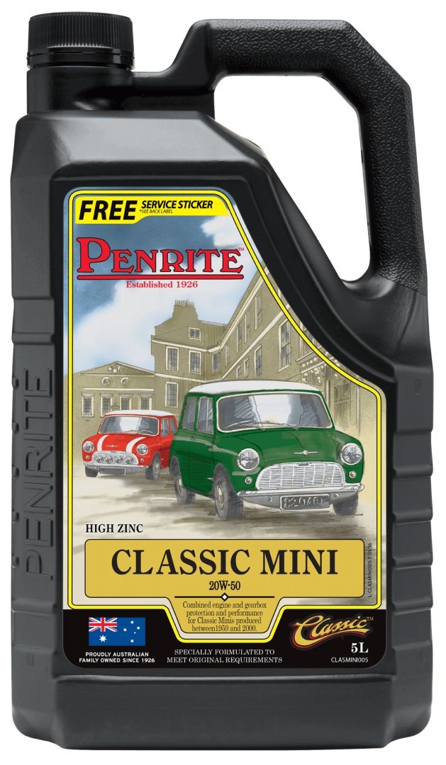 Classic Mini is a premium mineral, high zinc, SAE 20W-50 viscosity, API SJ/CE, GL-4 engine oil, designed in conjunction with International Mini Clubs and owners in the UK and Australia specifically for all classic Minis (Austin, BMC & Leyland). It has been designed to provide an excellent combination of engine protection and smooth gear shifts. Classic Mini contains a high zinc anti-wear package for ultimate engine wear protection combined with premium quality base oils and additives that exceed original manufacturers specifications for these vehicles.