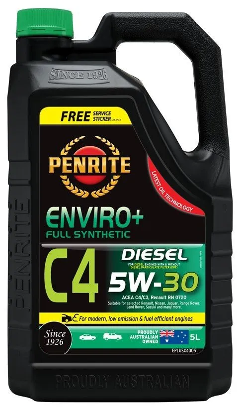 Penrite Enviro + C4 5W-30 Full Synthetic 5L Najwyższej jakości, w pełni syntetyczny olej klasy SAE 5W-30. Wyprodukowany z wykorzystaniem najnowszej technologii low SAPS (niska zawartość popiołów siarczanowych, fosforu i siarki). Lepkość 5W-30 Olej bazowy Full Synthetic Rodzaje paliwa Diesel, Petrol, LPG Zalety Wyprodukowany z wykorzystaniem najnowszej technologii low SAPS ENVIRO+ C4 to najwyższej jakości, w pełni syntetyczny olej klasy SAE 5W-30. Wyprodukowany z wykorzystaniem najnowszej technologii low SAPS (niska zawartość popiołów siarczanowych, fosforu i siarki). ENVIRO+ C4 spełnia Europejskie normy ACEA C4. ZASTOSOWANIE ENVIRO+ C4 jest przeznaczony do stosowania w nowoczesnych silnikach 4-, 6- i 8+-cylindrowych, z wieloma wałkami rozrządu, wielo-zaworowych, w tym VVT, wolnossących, doładowanych i turbodoładowanych. ENVIRO+ C4 to olej low SAPS klasy SAE 5W-30 odpowiedni do samoch odów benzynowych i z siln ikiem diesla małej mocy marki Renault i Samsung oraz do samochodów z napędem 4WD, które wymagają olejów spełniających normy RN 0720 oraz ACEA C4. ENVIRO+ C4 jest zalecany do samochodów Nissan z 2012r. i nowszych z 3.0l silnikiem diesla wyposażonym w filtr DPF (filtr cząstek stałych) oraz do wybranych modeli samochodów marki Jaguar, Land Rover, Suzuki i Renault, gdzie wymagana jest ta specyfikacja. Może być również używany w silnikach, które wymagają olejów spełniających normę ACEA C1, gdzie zapewnią taką sama lub lepszą ochronę. ENVIRO+ C4 jest odpowiedni do silników benzynowych oraz napędzanych olejem napędowym wyposażonych w filtr DPF, które wymagają olejów spełniających normę ACEA C4. ENVIRO+ C4 nie jest zalecany do stosowania w motocyklach. ZALETY PRODUKTU Wydłuża żywotność filtra cząstek stałych Wydłużone okresy pracy silnika bez konieczności wymiany oleju Dłuższa żywotność katalizatorów Przyjazny dla układu kontroli emisji spalin Mniejsze zużycie oleju dzięki odporności na ścinanie Zwiększa oszczędność paliwa* *oszczędność paliwa zwiększona o >1.5% w porównaniu z podobnym olejem w teście silnika M111FE NORMY BRANŻOWE ACEA C3 ACEA C4 Ford M2C934-B (level) MB 226.51 MB 229.31 MB 229.51 Renault RN 0720