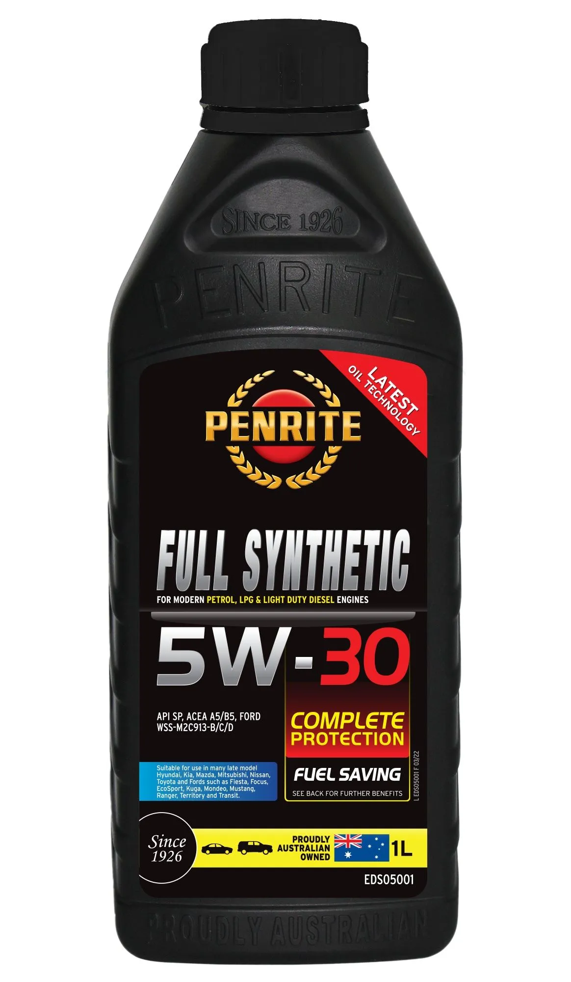 Penrite Full Synthetic 5W-30 1L FULL SYNTHETIC 5W-30 jest to wysokiej jakości syntetyczny olej silnikowy charakteryzujący się klasą lepkości SAE 5w-30. Zaprojektowany by zapewniać najwyższą trwałość oraz utrzymanie czystości silnika. Lepkość 5W-30 Olej bazowy Full Synthetic Rodzaje paliwa Diesel, LPG Zalety w pełni cynkowy FULL SYNTHETIC 5W-30 jest to wysokiej jakości syntetyczny olej silnikowy charakteryzujący się klasą lepkości SAE 5w-30. Zaprojektowany by zapewniać najwyższą trwałość oraz utrzymanie czystości silnika. Produkt zawiera dodatki uszlachetniające najnowszej generacji m.in. pakiet ochronny FULL ZINC, modyfikatory chroniące olej przed ścinaniem podczas pracy w środowisku dużych obciążeń, zapobiegające utlenianiu, korozji oraz odkładaniu się osadów. ZASTOSOWANIE FULL SYNTHETIC 5W-30 jest przeznaczony do stosowania w nowoczesnych silnikach 4-, 6- i 8+-cylindrowych, z wieloma wałkami rozrządu, wielozaworowych, w tym VVT, wolnossących, doładowanych i turbodoładowanych. FULL SYNTHETIC 5W-30 jest olejem zalecanym do zastosowania w samochodach napędzanych benzyną, olejem napędowym oraz LPG. Może być stosowany w pojazdach gdzie producent zaleca stosowanie olejów o lepkości 5w-30, oraz 5w-20. Spełnia normy API SL oraz ACEA A1/B1 i ACEA A5/B5. Może być zastosowany również w aplikacjach gdzie producent zaleca użycie oleju według normy ACEA A3/B3 lub A3/B4. FULL SYNTHETIC 5W-30 jestodpowiedni do samochodów osobowych, z napędem 4WD oraz lekkich dostawczych. ZALETY PRODUKTU Zaprojektowany, aby zapewnić PEŁNĄ OCHRONĘ, trwałość i czystość silnika. Pakiet dodatków przeciwzużyciowych FULL ZINC zapewnia najwyższą ochronę silnika przed zużyciem EUROPEAN ACEA A5/B5 dla olejów o przedłużonym interwale serwisowym W PEŁNI SYNTETYCZNY olej bazowy zapewniający odporność na ciepło i wysoką wydajność LOW SHEAR VI Polepszacze zmniejszają zużycie oleju i utrzymują jego ciśnienie Spełnia specyfikacje FORD WSS M2C913-D Dłuższa żywotność silnika dzięki ograniczeniu powstawania osadów wysokotemperaturowych Sprawdzona i godna zaufania ochrona silników o wysokich osiągach NORMY BRANŻOWE ACEA A5/B5 API SL Ford M2C912-A Ford M2C913-B Ford M2C913-C Ford M2C913-D Ford WSS-M2C913-A Ford WSS-M2C913-B Ford WSS-M2C913-C Ford WSS-M2C913-D Renault RN 0700 ACEA A1/B1 (Obsolete) ACEA A3/B3 (PRIOR TO 2017) ACEA A3/B4 (PRIOR TO 2017) WŁAŚCIWOŚCI Gęstość w 15 oC - 0,852 kg/L Lepkość w 40oC - 52 Indeks Lepkości - 170 Lepkość CCS, cP w -30oC - 3660 HT/HS w 150 C - 3,1 Zawartość cynku % - 0,105 Zawartość fosforu - 0,96 Zawartość popiołów siarczanowych, w % - 1,09 Noack - 9 TBN - 10,1