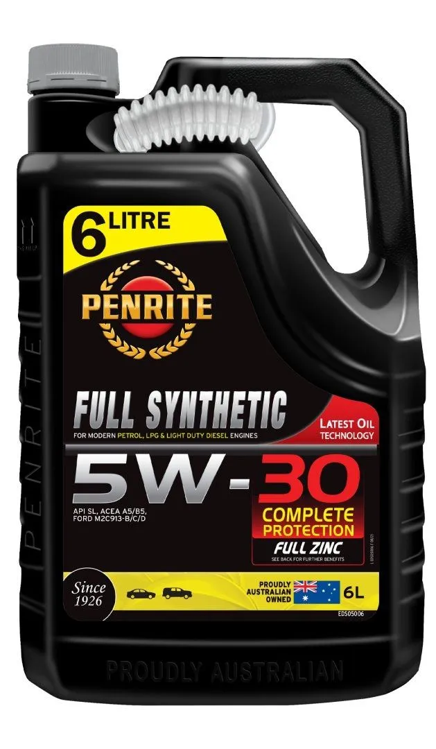 Penrite Full Synthetic 5W-30 6L FULL SYNTHETIC 5W-30 jest to wysokiej jakości syntetyczny olej silnikowy charakteryzujący się klasą lepkości SAE 5w-30. Zaprojektowany by zapewniać najwyższą trwałość oraz utrzymanie czystości silnika. Lepkość 5W-30 Olej bazowy Full Synthetic Rodzaje paliwa Diesel, LPG Zalety w pełni cynkowy FULL SYNTHETIC 5W-30 jest to wysokiej jakości syntetyczny olej silnikowy charakteryzujący się klasą lepkości SAE 5w-30. Zaprojektowany by zapewniać najwyższą trwałość oraz utrzymanie czystości silnika. Produkt zawiera dodatki uszlachetniające najnowszej generacji m.in. pakiet ochronny FULL ZINC, modyfikatory chroniące olej przed ścinaniem podczas pracy w środowisku dużych obciążeń, zapobiegające utlenianiu, korozji oraz odkładaniu się osadów. ZASTOSOWANIE FULL SYNTHETIC 5W-30 jest przeznaczony do stosowania w nowoczesnych silnikach 4-, 6- i 8+-cylindrowych, z wieloma wałkami rozrządu, wielozaworowych, w tym VVT, wolnossących, doładowanych i turbodoładowanych. FULL SYNTHETIC 5W-30 jest olejem zalecanym do zastosowania w samochodach napędzanych benzyną, olejem napędowym oraz LPG. Może być stosowany w pojazdach gdzie producent zaleca stosowanie olejów o lepkości 5w-30, oraz 5w-20. Spełnia normy API SL oraz ACEA A1/B1 i ACEA A5/B5. Może być zastosowany również w aplikacjach gdzie producent zaleca użycie oleju według normy ACEA A3/B3 lub A3/B4. FULL SYNTHETIC 5W-30 jestodpowiedni do samochodów osobowych, z napędem 4WD oraz lekkich dostawczych. ZALETY PRODUKTU Zaprojektowany, aby zapewnić PEŁNĄ OCHRONĘ, trwałość i czystość silnika. Pakiet dodatków przeciwzużyciowych FULL ZINC zapewnia najwyższą ochronę silnika przed zużyciem EUROPEAN ACEA A5/B5 dla olejów o przedłużonym interwale serwisowym W PEŁNI SYNTETYCZNY olej bazowy zapewniający odporność na ciepło i wysoką wydajność LOW SHEAR VI Polepszacze zmniejszają zużycie oleju i utrzymują jego ciśnienie Spełnia specyfikacje FORD WSS M2C913-D Dłuższa żywotność silnika dzięki ograniczeniu powstawania osadów wysokotemperaturowych Sprawdzona i godna zaufania ochrona silników o wysokich osiągach NORMY BRANŻOWE ACEA A5/B5 API SL Ford M2C912-A Ford M2C913-B Ford M2C913-C Ford M2C913-D Ford WSS-M2C913-A Ford WSS-M2C913-B Ford WSS-M2C913-C Ford WSS-M2C913-D Renault RN 0700 ACEA A1/B1 (Obsolete) ACEA A3/B3 (PRIOR TO 2017) ACEA A3/B4 (PRIOR TO 2017) WŁAŚCIWOŚCI Gęstość w 15 oC - 0,852 kg/L Lepkość w 40oC - 52 Indeks Lepkości - 170 Lepkość CCS, cP w -30oC - 3660 HT/HS w 150 C - 3,1 Zawartość cynku % - 0,105 Zawartość fosforu - 0,96 Zawartość popiołów siarczanowych, w % - 1,09 Noack - 9 TBN - 10,1