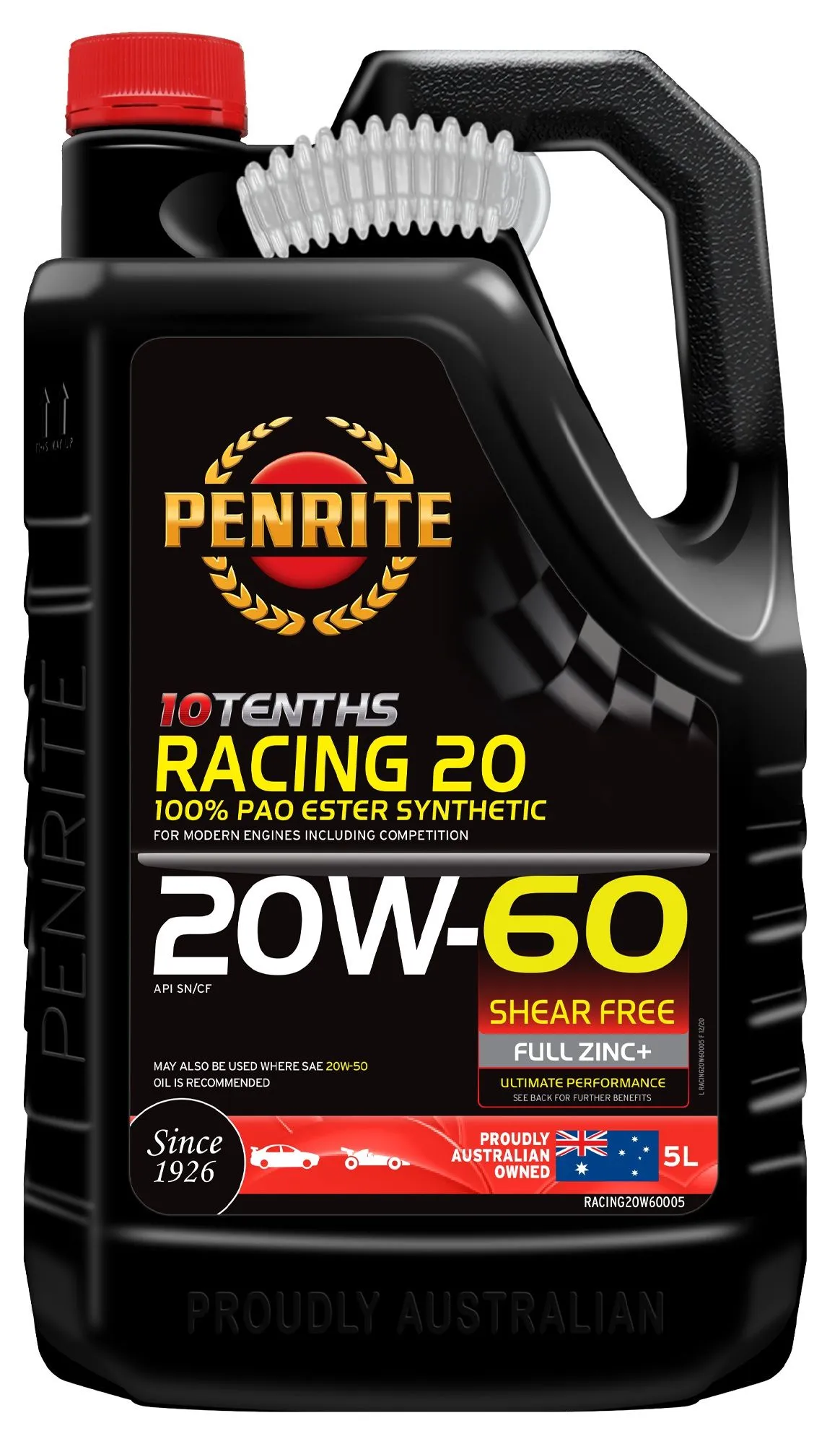 Penrite Racing 10 20W-60 PAO ESTER Full Synthetic 5L Racing 20 to w 100% syntetyczny olej silnikowy klasy SAE 20W-60, oparty na bazie PAO i esterów, odporny na ścinanie (SHEAR FREE). Zawiera wysokiej jakości oleje bazowe PAO i estrowe, wzbogacone o technologię FULL ZINC+ (ponad 2200 ppm cynku) pakiet dodatków przeciwzużyciowych, zapewniający maksymalną ochronę silnika. Factory RacingProdukty z serii Penrite 10 Tenths Racing są wykorzystywane przez fabryczne zespoły wyścigowe, gwarantując najwyższą wydajność i ochronę. Lepkość 20W-60 Olej bazowy 100% PAO ESTER Full Synthetic Rodzaj paliwa Petrol, Diesel, Racing, E85, LPG ZASTOSOWANIE Racing 20 został opracowany do nowoczesnych silników 4-, 6- i 8-cylindrowych, z wieloma wałkami rozrządu, zarówno wolnossących, jak i doładowanych (turbosprężarka/sprężarka). Nadaje się do wysokowydajnych silników używanych zarówno w zawodach, jak i w codziennej jeździe. Polecany do pojazdów, w których producent zalecał oleje SAE 20W-50 lub SAE 20W-60. Może być stosowany w silnikach wymagających norm: API SN oraz starszych (SM 2004-2010, SL 2001-2004, SJ 1998-2000), ACEA A3/B3 (modele przed 2017 r.) i ACEA A3/B4 (przed 2008 r.), W wielu silnikach Diesla i LPG wymagających oleju spełniającego normę API CF lub starszą. Nie jest zalecany do silników Diesla z DPF (filtrem cząstek stałych). Formuła Shear Free minimalizuje utratę lepkości i utrzymuje stabilne ciśnienie oleju nawet w ekstremalnych warunkach. Bezpieczny dla nowoczesnych układów emisji spalin (np. katalizatorów). TYPY POJAZDÓW I PALIW Racing 20 nadaje się do użytku wyścigowego i codziennego w samochodach osobowych oraz lekkich dostawczych. Kompatybilny z: benzyną, LPG, E10, E85 (tylko wyścigi), olejem napędowym (bez DPF), avgasem, nitro, metanolem i innymi konwencjonalnymi paliwami. Nieodpowiedni do motocykli z mokrym sprzęgłem. PENRITE TEN TENTHS Racing 20 sprawdzony w warunkach wyścigowych w silnikach wymagających wysokowydajnego oleju pełnosyntetycznego. Wybierany przez zawodników w: wyścigach torowych i dragach, rajdach, driftingu, hill climb, targa, time trials. Ważne informacje przy wymianie oleju UWAGA: Przy wymianie oleju zalecamy użycie Penrite Engine Flush – szybko działającego, bezzwiązkowego płynu czyszczącego, który usuwa osady i zanieczyszczenia wraz z olejem. Zawiera dodatek cynku dla ochrony silnika (działa w 10 minut). Full Zinc+ = Połączona zawartość cynku i boru jako kompleksowy pakiet przeciwzużyciowy. NORMY BRANŻOWE API SN API SN/CF BMW LL-98 MB 229.1. VW 502 00 NORMY PRODUCENTÓW ACEA A3/B3 (PRIOR TO 2017) ACEA A3/B4 (PRIOR TO 2008) API SL API SM