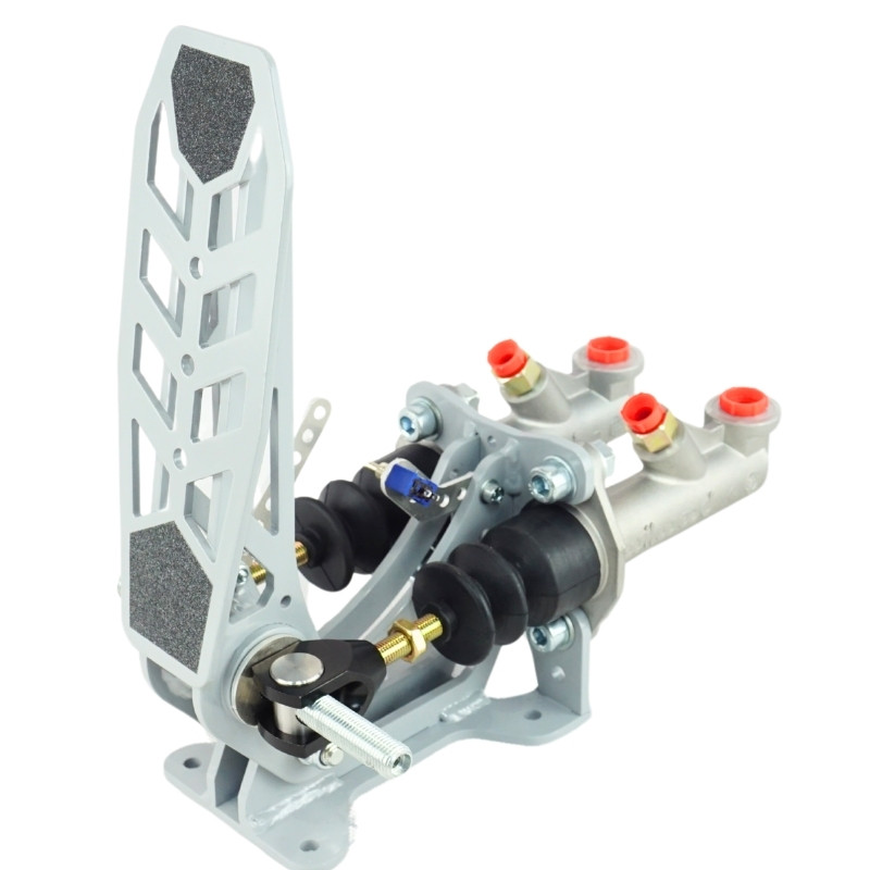 RacingPedalBoxes RPBB001 Pedał hamulca – Formula Student RacingPedalBoxes RPBB001 to pedał hamulca zaprojektowany specjalnie do samochodów Formula Student (FSAE), w pełni zgodny z regulaminem zawodów. Wykonany ze spawanej stali o lekkiej konstrukcji, zapewnia bezpieczeństwo, trwałość i optymalny stosunek sztywności do masy. Najważniejsze cechy: Zaprojektowany do samochodów Formula Student (FSAE) Wyposażony w 2 niezależne pompy i rozpórkę do regulacji siły hamowania przód/tył (Przepis T 6.1.2) Każda pompa może mieć osobny zbiorniczek płynu (Przepis T 6.1.2) Pedał odporny na siłę 2 kN bez uszkodzenia (Przepis T 6.1.9) Lekka, spawana konstrukcja stalowa (Przepis T 6.1.10) W zestawie wyłącznik nadmiernego skoku hamulca (BOTS) (Przepis T 6.2) Szeroka antypoślizgowa powierzchnia pedału Rozpórka 7/16”-20 UNF dla maksymalnej sztywności Przyłącza pomp: 5/16”-24 UNF (Wilwood/Girling) Przełożenie pedału: 5:1 Możliwość montażu regulatora balansu hamulców (7/16 UNF, RPBAB03) Kompatybilny z czujnikiem światła stopu banjo 3/8 UNF (RPBAB12) (Przepis T 6.3) Możliwość montażu zbiorniczków płynu (RPBAD02) bezpośrednio lub niezależnie Waga: 1,4 kg (bez pomp) / 2,2 kg (z pompami) Montaż podłogowy na cztery śruby M6 Powłoka antykorozyjna zapewniająca trwałość Pompy główne sprzedawane oddzielnie
