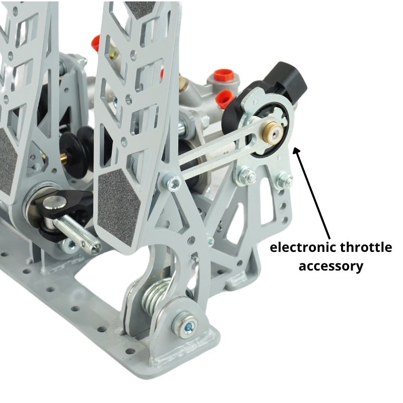 PEDALBOX DRIFTING & RALLY – Szary (RPB0003) (Wersja czarna – RPB0003B dostępna w osobnej ofercie) Pedalbox Drifting & Rally od Racingpedalboxes został zaprojektowany specjalnie do samochodów driftingowych i rajdowych. Może być montowany bezpośrednio do podłogi lub na prowadnicach, co pozwala dopasować pozycję pedałów do różnych kierowców. Pedały mają szeroką powierzchnię, co poprawia ergonomię, komfort prowadzenia i ułatwia łączenie kombinacji pedałów. Pedalbox wykonany jest ze spawanych stalowych elementów, o lekkiej konstrukcji i doskonałym stosunku sztywności do wagi. Specyfikacja techniczna: Kolor szary (RPB0003), czarny (RPB0003B – dostępny osobno). Pedalbox podłogowy. Regulowany pedał gazu na linkę (w zestawie). Pedał gazu z regulowanym kątem obrotu i skokiem linki. Pedał hamulca z regulowanym balanserem 5/16 UNF. Przełożenie pedału hamulca: 5:1. Hydrauliczny pedał sprzęgła. Balance bar w zestawie: gwint 7/16”-20 UNF dla maksymalnej sztywności. Przyłącza pomp hamulcowych: 5/16”-24 UNF. Kompatybilny z pompami Wilwood i OEM. Podpórka pod stopę w zestawie. Wszystkie pedały z powierzchnią antypoślizgową. Osie pedałów wykonane ze stali wysokiej jakości z regulacją bocznego luzu (nakrętka regulacyjna). Elementy pokryte powłoką antykorozyjną dla maksymalnej trwałości. Waga: 3,4 kg bez pomp / 4,5 kg z pompami. Pompy hamulcowe sprzedawane oddzielnie. Opcjonalne akcesoria: Akcesorium linki sprzęgła Pedalbox RPB0003 (ref. RPBAC06). Czujnik elektroniczny Pedalbox RPB0003 (ref. RPBAC07). Zdalny regulator balansu hamulców (7/16 UNF) (ref. RPBAB03).