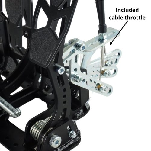 Pedalbox Kit Car RPB0001 Czarny – RacingPedalBoxes Pedalbox Kit Car RPB0001 w kolorze czarnym to optymalne rozwiązanie dla pojazdów takich jak prototypy, buggy, formuły i podobne konstrukcje. Został zaprojektowany do montażu bezpośrednio do podłogi lub na prowadnicach, co umożliwia dopasowanie pozycji do różnych kierowców. Najważniejsze cechy: Montaż podłogowy zapewniający stabilność Szerokie, antypoślizgowe powierzchnie pedałów Wspornik podnóżka w zestawie Pedał gazu z regulowanym mechanizmem linki (w komplecie) Regulowany kąt obrotu i skok linki Możliwość montażu elektronicznego czujnika przepustnicy RPBAC09 Pedał hamulca z rozpórką do dwóch pomp hamulcowych Przełożenie pedału hamulca: 5:1 Gwint rozpórki: 7/16”-20 UNF Złącza pomp: 5/16”-24 UNF (Wilwood/Girling) Możliwość montażu regulatora balansu hamulców RPBAB03 Pedał sprzęgła hydrauliczny Opcjonalny zestaw do sprzęgła linkowego RPBAC05 Konstrukcja spawana ze stali, zoptymalizowana pod kątem sztywności i masy Wysokiej jakości osie pedałów z regulacją luzu bocznego Powłoka antykorozyjna zapewniająca trwałość Waga: 3,25 kg (bez pomp) / 4,45 kg (z pompami) Kolor: Czarny (ref. RPB0001B) Dostępny także w kolorze Szarym (ref. RPB0001) Pompy główne sprzedawane oddzielnie Opcjonalne akcesoria: Czujnik elektronicznej przepustnicy RPBAC09 Zestaw do sprzęgła linkowego RPBAC05 Regulator balansu hamulców RPBAB03