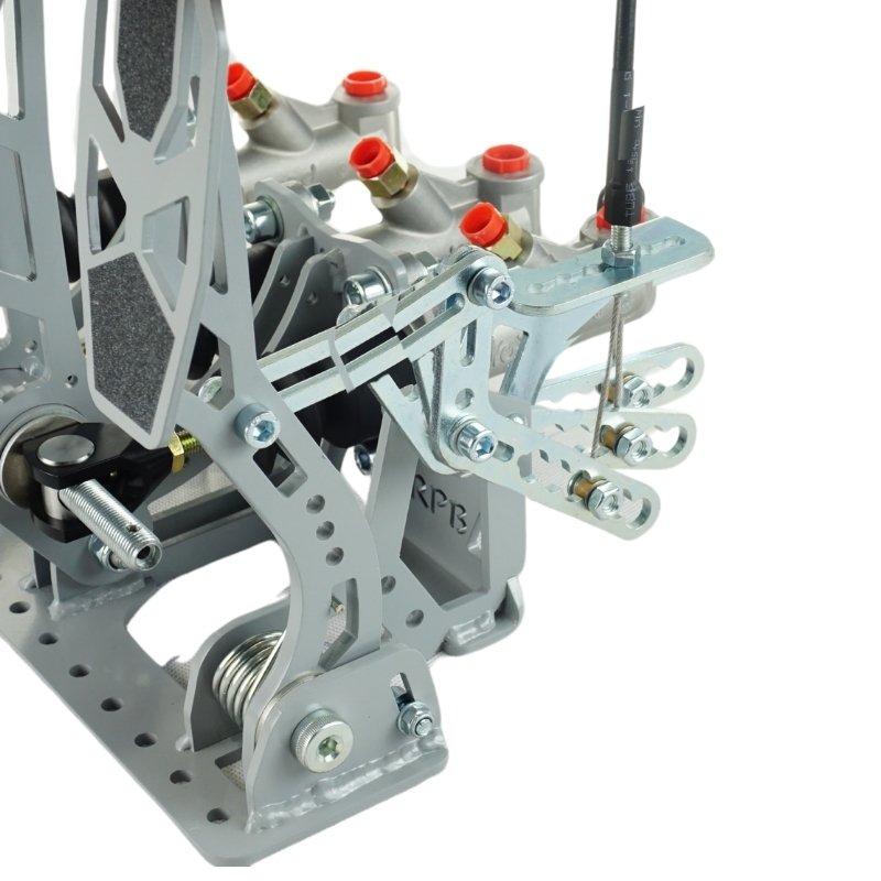 Pedalbox Kit Car RPB0001 Szary – Racingpedalboxes Pedalbox Kit Car RPB0001 w kolorze szarym to optymalne rozwiązanie dla pojazdów takich jak prototypy, buggy, formuły i podobne konstrukcje. Został zaprojektowany do montażu bezpośrednio do podłogi lub na prowadnicach, co umożliwia dopasowanie pozycji do różnych kierowców. Najważniejsze cechy: Montaż podłogowy zapewniający stabilność Szerokie, antypoślizgowe powierzchnie pedałów Wspornik podnóżka w zestawie Pedał gazu z regulowanym mechanizmem linki (w komplecie) Regulowany kąt obrotu i skok linki Możliwość montażu elektronicznego czujnika przepustnicy RPBAC09 Pedał hamulca z rozpórką do dwóch pomp hamulcowych Przełożenie pedału hamulca: 5:1 Gwint rozpórki: 7/16”-20 UNF Złącza pomp: 5/16”-24 UNF (Wilwood/Girling) Możliwość montażu regulatora balansu hamulców RPBAB03 Pedał sprzęgła hydrauliczny Opcjonalny zestaw do sprzęgła linkowego RPBAC05 Konstrukcja spawana ze stali, zoptymalizowana pod kątem sztywności i masy Wysokiej jakości osie pedałów z regulacją luzu bocznego Powłoka antykorozyjna zapewniająca trwałość Waga: 3,25 kg (bez pomp) / 4,45 kg (z pompami) Kolor: Szary (ref. RPB0001) Dostępny także w kolorze Czarnym (ref. RPB0001B) Pompy główne sprzedawane oddzielnie Opcjonalne akcesoria: Czujnik elektronicznej przepustnicy RPBAC09 Zestaw do sprzęgła linkowego RPBAC05 Regulator balansu hamulców RPBAB03