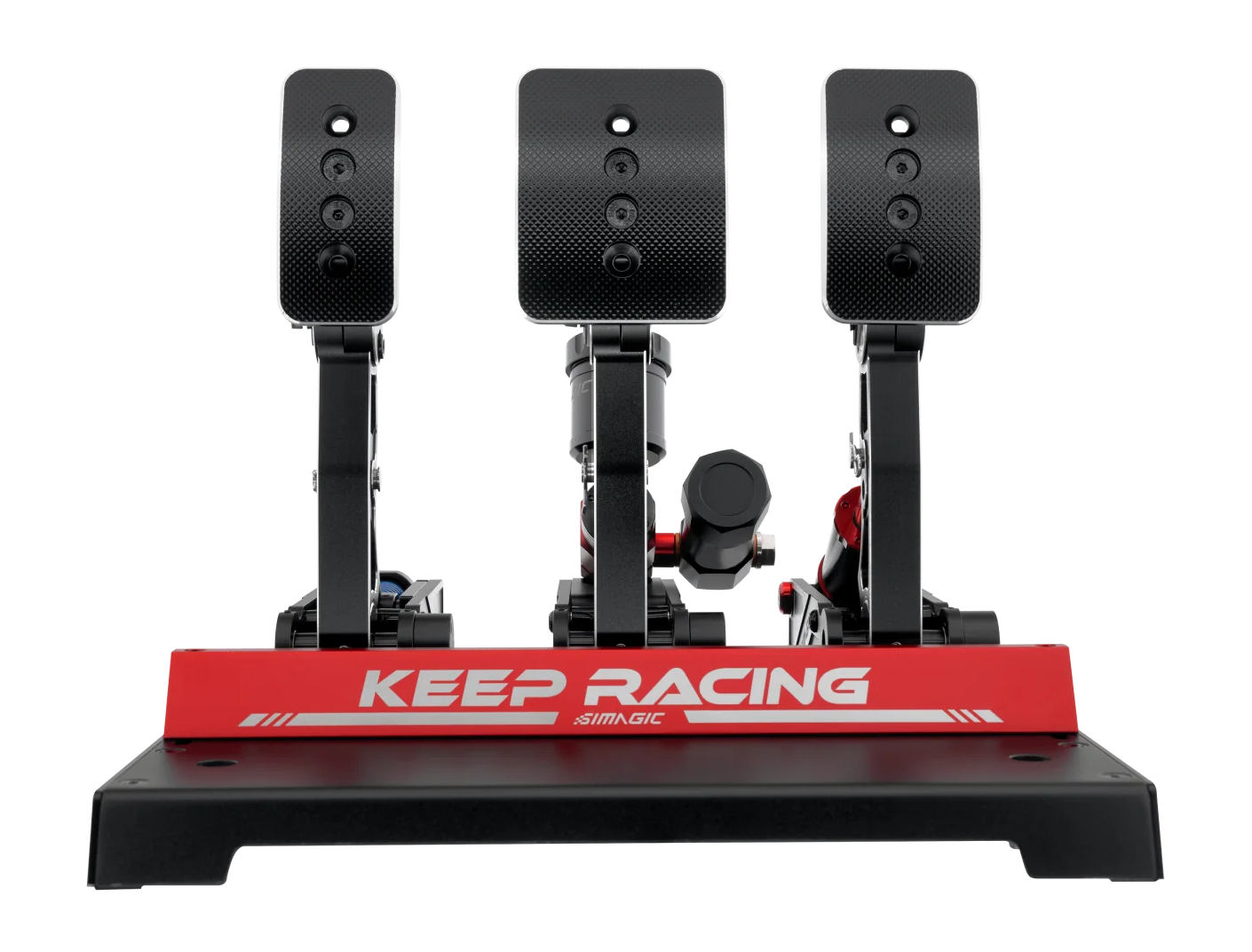 P1000-RS – standardowa wersja z wysoką precyzją 12-bit Profesjonalna precyzja w standardowym układzie P1000-RS to standardowa wersja pedałów SIMAGIC z najwyższej klasy czujnikami 12-bit (4096). Dzięki temu każdy milimetr ruchu pedału jest odczytywany z wyjątkową dokładnością – idealnie do wyścigów torowych, rajdów i codziennych treningów simracingowych. Zaawansowana technologia czujników – Hall + Loadcell Każdy pedał wykorzystuje zoptymalizowany typ sensora: Pedał gazu – czujnik Halla (płynna, precyzyjna praca) Pedał hamulca – czujnik Halla lub loadcell 100 kg (realistyczne hamowanie siłą nacisku) Pedał sprzęgła – czujnik Halla Dzięki temu P1000-RS zapewnia naturalne wyczucie i wysoką powtarzalność przy każdym okrążeniu. Pełna regulacja pod Twój styl jazdy P1000-RS oferuje szeroki zakres personalizacji: regulacja skoku pedałów, regulacja siły sprężyn (sprzęgło i hamulec), regulacja liniowości, regulacja siły hamowania, ustawienia martwych stref, regulacja kąta oraz położenia płytek pedałowych. Możesz dopasować je zarówno do stylu jazdy rajdowej, jak i do precyzyjnych wyścigów torowych. CNC Aluminium – solidność klasy premium Konstrukcja P1000-RS oparta jest na: aluminium obrabianym CNC, anodowanych płytkach pedałów, wysokiej sztywności i trwałości. To zestaw zaprojektowany do intensywnego użytkowania i mocnego nacisku na hamulec – bez ugięć i bez luzów. Kompatybilność i łatwa integracja P1000-RS podłączysz: przez USB do PC, do baz SIMAGIC poprzez port CAN-Bus. Zestaw zawiera także pedal control box, który ułatwia podłączenie i konfigurację. Opcjonalne rozszerzenia Wersja standardowa P1000-RS umożliwia późniejszą rozbudowę: Haptic Pedal Reactor (opcjonalnie) – odwzorowanie drgań i sygnałów z toru, hydrauliczny cylinder (opcjonalnie) – realizm hamulca i sprzęgła na poziomie motorsportu.
