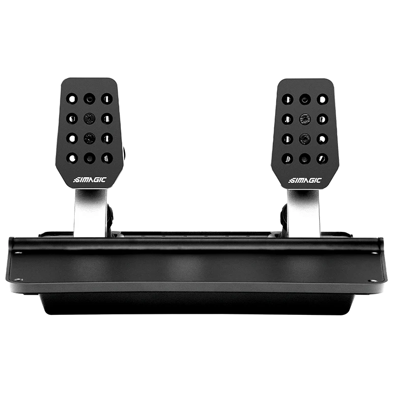 Pedalbox P500 - profesjonalny poziom od pierwszego dnia. Zestaw, który działa od razu, a zaprojektowany jest jak sprzęt dla pro. P500 to pedały stworzone z myślą o kierowcach, którzy chcą realizmu, precyzji i możliwości dopasowania pod własny styl jazdy – bez przepłacania. Podwójny system czujników – moc kontroli P500 wykorzystuje połączenie czujnika tensometrycznego 100 kg (loadcell) oraz czujnika Halla kąta wychylenia: Czujnik Halla idealnie pasuje do „dłuższej” drogi pedału, jak w autach drogowych. Loadcell 100 kg sprawdza się przy krótszym skoku hamulca, jak w autach wyścigowych, zwiększając realizm i wrażenie obciążenia. Gaz i sprzęgło działają na czujnikach Halla, zapewniając płynne i precyzyjne wejście, niezależnie od toru. Ergonomia, którą łatwo dopasować P500 oferuje szeroki zakres regulacji – większy niż wiele konkurencyjnych zestawów: Regulacja boczna pedałów Kilka pozycji otworów montażowych pozwala przesuwać gaz, hamulec i sprzęgło względem siebie, aby dopasować ich rozstaw do Twojej pozycji. Regulacja położenia płytki pedału Możliwość przesunięcia płytki pedału, by lepiej dopasować ją do rozmiaru stopy. Regulacja kąta płytki Zmieniaj kąt nachylenia tak, aby odpowiadał Twojej pozycji siedzącej i typowi kokpitu. Wyreguluj je idealnie pod siebie W zestawie znajdują się różne sprężyny i elastomery, dzięki czemu: możesz zmieniać siłę nacisku, dopasujesz charakter pracy pedałów do swojego stylu jazdy, ustawisz hamulec od miękkiego po twardy, jak w wyścigówce. Szybki mechanizm wymiany sprawia, że zmiana sprężyn i elastomerów jest prosta i szybka – bez skomplikowanych rozbiórek. Konstrukcja klasy automotive Korpus P500 wykonano jako zintegrowaną odlewaną konstrukcję ze stopu aluminium, dopracowaną w precyzyjnej obróbce CNC. Efekt: solidne, trwałe pedały, przyjemne w dotyku wykończenie, wysoka jakość bez astronomicznej ceny. P500 to przykład typowego dla SIMAGIC stosunku cena / możliwości. Lekka, sztywna i trwała konstrukcja Nowa, przemyślana forma sprawia, że pedały są: lekkie, wytrzymałe, stabilne pod stopą – nic się nie wygina i nie „pływa”. Precyzyjna obróbka oraz łożyskowane punkty pracy pedałów zapewniają wyraźny, powtarzalny opór i klarowne wyczucie każdego ruchu. Montaż do fotela, rig’a lub podłogi W zestawie znajdują się elementy do: montażu na rigach simracingowych, montażu bezpośrednio do podłogi, w komplecie są również uchwyty ścienne. Dzięki temu łatwo wpasujesz P500 w swój aktualny setup. Od dwóch do trzech pedałów – kiedy zechcesz P500 można rozbudować: zacząć od zestawu dwupedałowego, w razie potrzeby przejść na trzy pedały, w zależności od preferowanej dyscypliny (np. auta z manualną skrzynią, rally, klasyki). Skalujesz zestaw wtedy, kiedy Ty tego potrzebujesz. Pełne wsparcie w SimPro Manager P500 współpracuje z oprogramowaniem SimPro Manager, które: umożliwia regulację wibracji, amplitudy i innych parametrów, pozwala łatwo dopasować działanie pedałów do gry i auta, jest centrum zarządzania Twoim sprzętem SIMAGIC.