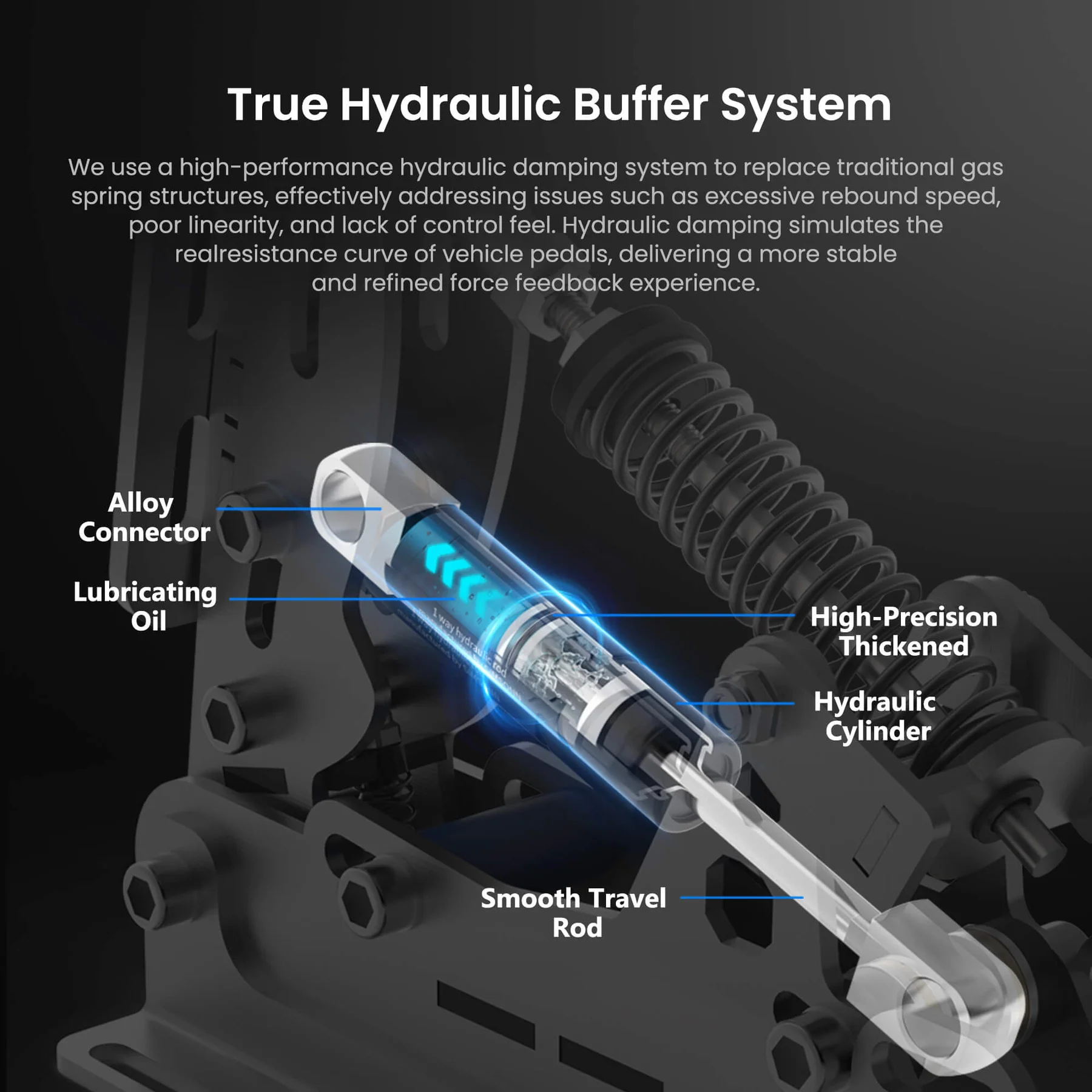 Simsonn Plus X Racing Simulation Pedal – Czarny Simsonn Plus X Racing Simulation Pedal to najwyższej klasy zestaw pedałów do symulatorów wyścigowych, łączący zaawansowaną inżynierię, precyzyjną mechanikę i solidną konstrukcję. Stworzony z myślą o profesjonalnych kierowcach oraz pasjonatach symulacji, oferuje realistyczne odwzorowanie wrażeń z jazdy, wyjątkową trwałość i szerokie możliwości personalizacji. Konstrukcja klasy premium Pedały wykonane są z wysokowytrzymałej stali nierdzewnej o grubości 3,5 mm, wycinanej laserowo dla idealnie gładkich, pozbawionych zadziorów krawędzi. Całość została poddana zabezpieczeniu antykorozyjnemu, co gwarantuje długą żywotność. Panele pedałów mają grubość 4 mm, a ich czarna, matowa powierzchnia o piaskowanej fakturze zapewnia pewny, antypoślizgowy kontakt z obuwiem kierowcy. Precyzyjna mechanika Wszystkie kluczowe punkty obrotu wyposażono w łożyska kulkowe klasy przemysłowej, eliminujące luzy i drgania oraz gwarantujące płynne działanie nawet po milionach cykli. Każdy element tłumiący został przetestowany w tysiącach cykli kompresji, zapewniając pełną powtarzalność i niezawodność pracy. Zaawansowany układ hamulcowy i tłumienia Zastosowano dwustopniowy system hamowania dla uzyskania autentycznego czucia pedału: Etap 1: płynny początek ruchu przy lekkim hamowaniu, Etap 2: progresywny, zwiększający się opór imitujący „złapanie” tarczy hamulcowej i rzeczywiste ciśnienie hamowania. Nowoczesne nieliniowe amortyzatory hydrauliczne zapewniają: jednokierunkowy opór hydrauliczny dla pedału gazu – gładkie, precyzyjne przyspieszanie, dwukierunkową reakcję hydrauliczną dla pedału hamulca i sprzęgła – realistyczne odwzorowanie oporu i drogi pedału. Trzy elastomery o różnej twardości oraz 13 przekładek tłumiących pozwalają dostosować charakterystykę hamulca do stylu jazdy i typu symulowanego pojazdu. Zatrzaskowy mechanizm umożliwia szybką wymianę elementów tłumiących. Pełna regulacja dynamiki Każdy aspekt działania pedałów można dopasować do własnych preferencji: Regulacja kąta nachylenia, siły, drogi pedału oraz krzywej oporu, Cztery ustawienia kąta – od –10° do +12°, Regulacja wstępnego napięcia sprężyny (preload) dla precyzyjnej kontroli gazu i hamulca. System hydrauliczny Gaz: jednokierunkowy opór hydrauliczny dla płynnego przyspieszania, Hamulce i sprzęgło: dwukierunkowy opór hydrauliczny zapewniający realistyczne odwzorowanie pracy pedałów. Obsługa modułu wibracyjnego (Rumble Module) Model Simsonn Plus X jest w pełni kompatybilny z najnowszymi modułami wibracyjnymi Simsonn, które dodają realistyczne efekty dotykowe – takie jak wibracje silnika, drgania nawierzchni czy odczucie hamowania. Nowoczesny system sterowania i elektronika Nowy moduł kontrolny wyposażony jest w: 32-bitowy procesor o wysokiej precyzji i niskim opóźnieniu, Zintegrowane ekranowanie EMI dla pedałów gazu i sprzęgła – zapewniające stabilny, czysty sygnał, Punkty montażowe dla modułów wibracyjnych, Pamięć kalibracji pedałów – wystarczy jednorazowe ustawienie, bez konieczności ponownej kalibracji. Oprogramowanie Simsonn Manager Dzięki dedykowanemu oprogramowaniu można: regulować krzywe reakcji, siłę hamowania, martwe strefy, zapisywać wiele profili użytkownika dla różnych symulatorów, korzystać z natychmiastowego połączenia Plug-and-Play przez USB – bez potrzeby instalowania sterowników. Dodatkowe ulepszenia 80HA Soft Limiter – redukuje uderzenie przy maksymalnym wciśnięciu pedału, zwiększając komfort i kontrolę, Ergonomiczny, zakrzywiony kształt pedałów – wspiera naturalne ułożenie stóp i redukuje zmęczenie, Plug-and-Play USB – natychmiastowa gotowość do działania po podłączeniu do komputera. Ulepszenia względem modelu Pro Plus W porównaniu z modelem Pro Plus, nowy Simsonn Plus X oferuje: ulepszony system hydrauliczny i bardziej realistyczny dwustopniowy hamulec, nową elektronikę z lepszym ekranowaniem EMI, materiały tłumiące o wyższej trwałości, testowane przez miliony cykli, pełną kompatybilność z modułem Rumble Module dla jeszcze większego realizmu. Kompatybilność i wymagania systemowe Kompatybilny z: komputerami PC (Windows). Niekompatybilny z: PlayStation 4 / 5, Xbox, macOS. Zawartość zestawu i elementy opcjonalne W zestawie: Zestaw 3 pedałów Simsonn Plus X z tłumikiem 60HA (czerwony), Dodatkowe tłumiki żółty i niebieski, 13 przekładek do regulacji siły hamowania, Lekka sprężyna czerwona (standardowa) oraz dodatkowe sprężyny niebieska i czerwona. Można używać razem z (sprzedawane osobno): Haptric Reactor – VAM Rumble Motor, Haptric Reactor – VAM Pro Linear Motor. Nie wchodzi w skład zestawu: Płyta bazowa (Baseplate) XBP-B, XBP-S – należy zakupić osobno, Moduły wibracyjne (Rumble Modules) VAM, VAM-P – dostępne jako osobne akcesoria. Dostępny także w kolorze srebrnym PLUS X-P3-H3-S (jako osobna oferta) Simsonn Plus X Racing Simulation Pedal to połączenie nowoczesnej technologii, realistycznej fizyki jazdy i wytrzymałej konstrukcji, które zapewnia niezrównane wrażenia z symulacji i najwyższy poziom kontroli dla każdego fana wyścigów.