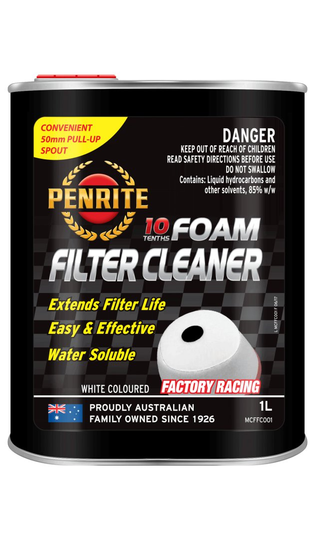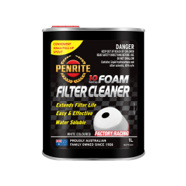Penrite MC Foam Filter Cleaner 1L Foam Filter Cleaner to specjalnie opracowany produkt do czyszczenia piankowych filtrów motocyklowych. Jest gotowym do użycia, nieżrącym i rozpuszczalnym w wodzie środkiem czyszczącym, który skutecznie usuwa uwięziony brud, lepki olej filtracyjny, tłuszcz i inne zanieczyszczenia z filtrów piankowych i dokładnie je zmywa. Zaawansowana formuła skutecznie czyści i zapobiega niszczeniu piany, zapewniając dłuższą żywotność filtra. Nie pozostawia szkodliwych osadów ani pozostałości, które mogłyby rdzewieć lub powodować korozję części silnika lub uszkodzić silnik. Zdolność środka czyszczącego do usuwania oleju, smaru i innych zanieczyszczeń sprawia, że jest on również niezwykle skutecznym środkiem odtłuszczającym silnik i części. Jest w kolorze białym. Jest szczególnie skuteczny w przypadku mocno zabrudzonych filtrów, które wymagają regularnego czyszczenia, takich jak te używane w zawodach motorowych typu cross i terenowych. Można go również stosować w zwykłych rowerach szosowych i sportowych, quadach, samochodach Sprint i innych pojazdach wyposażonych w zmywalne piankowe filtry powietrza. Foam Filter Cleaner można również stosować do filtrów piankowych w sprzęcie terenowym, takim jak kosiarki i sprężarki, i jest bardzo skuteczny w usuwaniu tłuszczu i brudu z metalu, lakieru i betonu. Jest także bardzo skutecznym odtłuszczaczem silników i części do codziennego użytku.