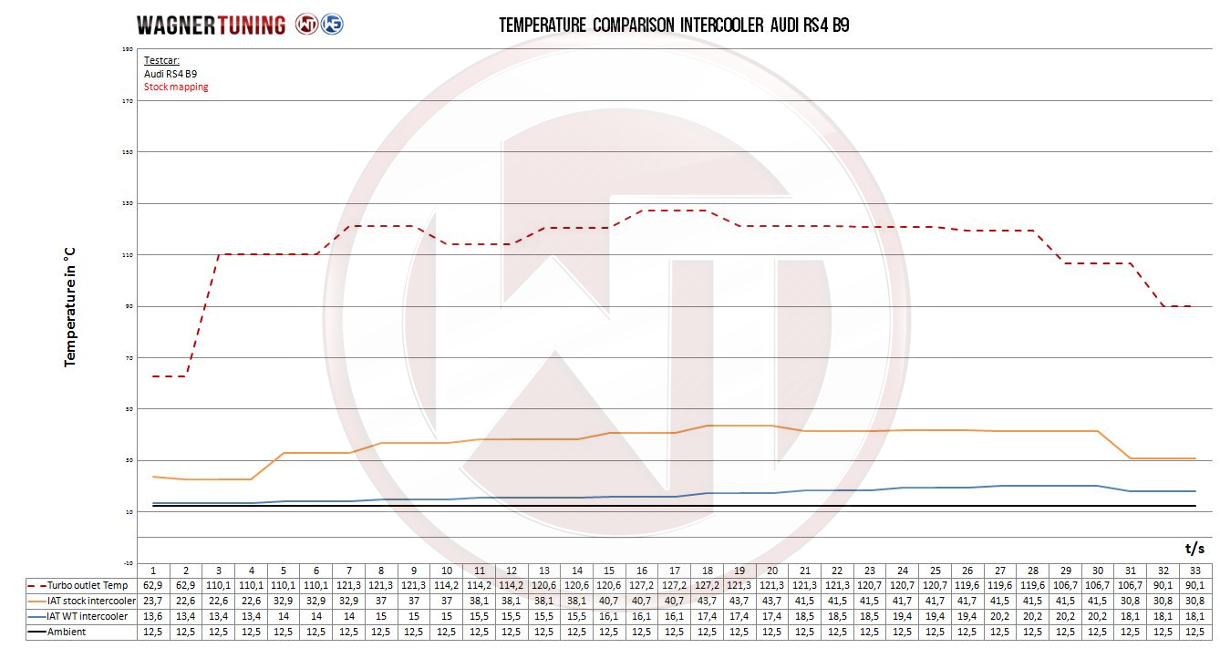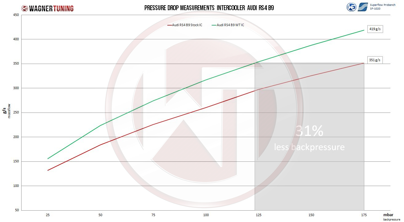 Doświadcz maksymalnej wydajności dzięki naszemu wysokowydajnemu intercoolerowi Wagner Tuning do Audi RS4/RS5!Nasz intercooler został specjalnie opracowany dla wymagającego silnika 2,9 litra V6 biturbo (VW EA839) w modelach Audi RS4/RS5. Zastępuje standardowy, wodnochłodzony intercooler i oferuje wiele korzyści.Dzięki nowemu rdzeniowi performance intercooler o wymiarach 222 mm x 200 mm x 120 mm zwiększyliśmy zewnętrzną objętość rdzenia o imponujące 185%. Dzięki optymalnym proporcjom między wewnętrzną i zewnętrzną powierzchnią chłodzącą zapewniamy maksymalny transfer ciepła i idealny przepływ powietrza wewnątrz. Odlewane aluminiowe komory końcowe zaprojektowano w CAD i dopracowano przy użyciu symulacji CFD. Efekt to znakomite właściwości chłodzenia przy minimalnych stratach ciśnienia. Nasz wysokowydajny intercooler świetnie sprawdza się także w sporcie motorowym, zapewniając optymalne chłodzenie powietrza doładowującego i wyraźny wzrost osiągów.Dla trwałego i niezawodnego działania chłodzącego wszystkie nasze intercoolery WagnerTuning są pokryte przewodzącą ciepło, antykorozyjną powłoką. Montaż jest prosty dzięki szczegółowej instrukcji i odbywa się w trybie plug & play.Zalety w skrócie:- Zdecydowanie lepsza skuteczność chłodzenia dla optymalnego rozwoju mocy- Zminimalizowane straty ciśnienia dla lepszych osiągów- Więcej mocy i momentu obrotowego dla intensywniejszych wrażeń z jazdy- Mniejsze obciążenie mechaniczne turbosprężarki dla dłuższej żywotności- 100% wytrzymałości na ciśnienie dla maksymalnej niezawodności- Łatwy, bezproblemowy montaż metodą Plug & Play- Gwarancja do 4 lat dla pełnego spokojuWynieś swoje Audi RS4/RS5 na nowy poziom dzięki naszemu wysokowydajnemu intercoolerowi WagnerTuning. Doświadcz znakomitego chłodzenia i maksymalnych osiągów na każdym torze!Zestaw performance intercooler Wagner Tuning pasuje do następujących modeli:Performance CHARGE AIR COOLER KIT Audi RS4 B9 / RS5 F5wymiary rdzenia seryjnego intercoolera:220 mm x 100 mm x 85 mmV = 1,87 litrawymiary rdzenia intercoolera Wagner Tuning:222 mm x 200 mm x 120 mmV = 5,33 litra (+185%)Part number: 200001162Zawartość zestawu:1 Intercooler2 Węże silikonowe (powietrze)6 Węży silikonowych (woda)1 Materiał montażowy1 Instrukcja instalacji