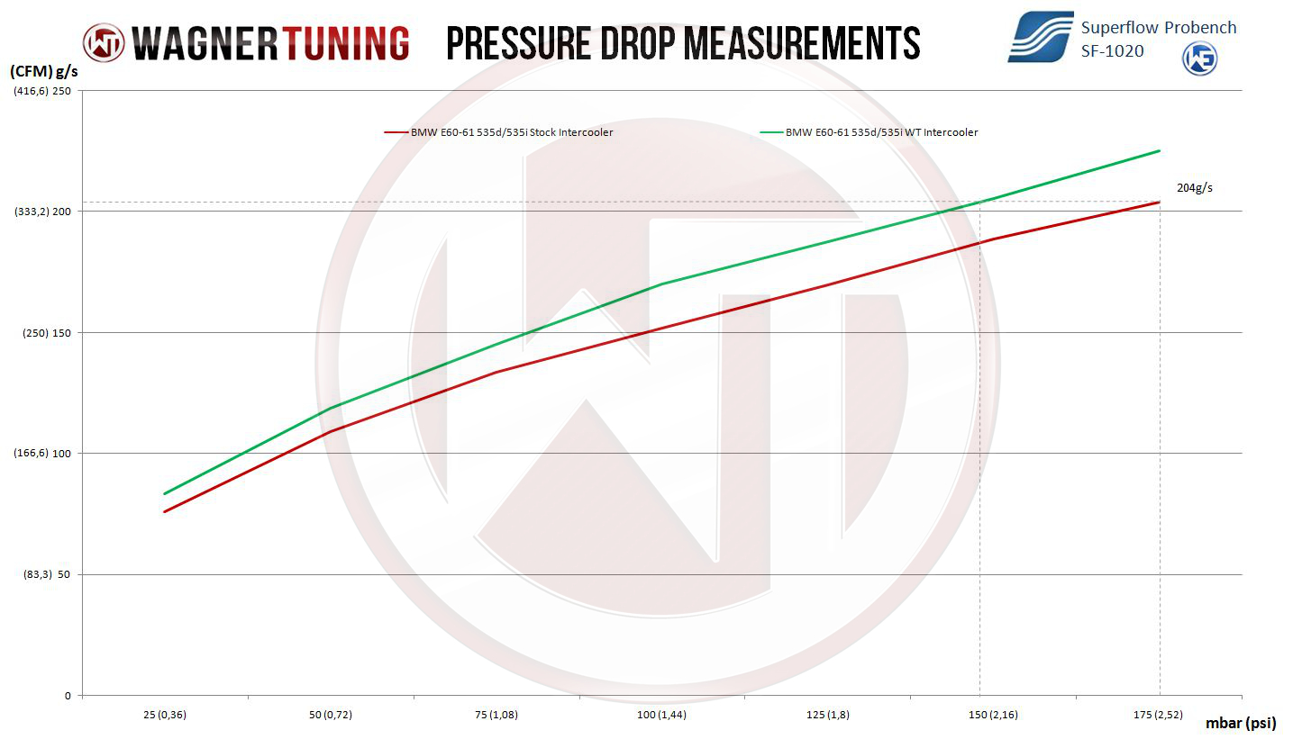 Inżynierowie Wagner Tuning zwiększyli rozmiar i wydajność rdzenia intercoolera, a także ulepszyli konstrukcję boczków, aby usunąć wszelkie wąskie gardła OEM, co skutkuje zwiększonym natężeniem przepływu i poprawą chłodzenia przepływającego powietrza.